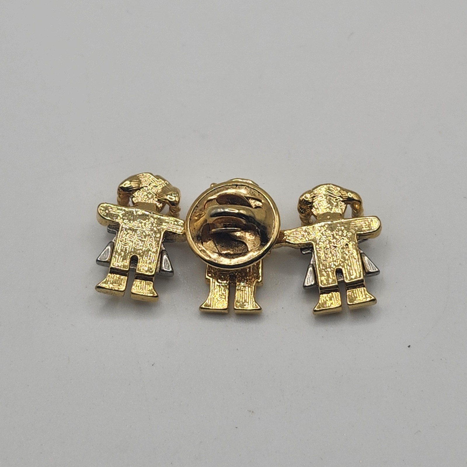 Vintage Gold Tone Three Kids Pin Brooch Boy Girl Enamel Lapel Children Gift