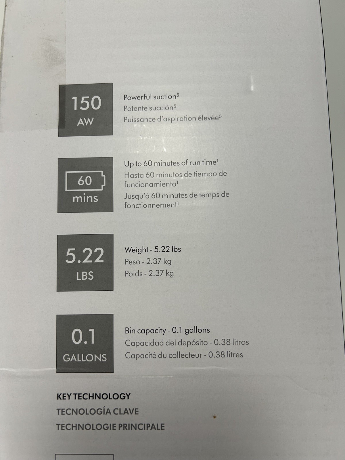 Included Accessories: Charger, Crevice Tool, Filter, Upholstery Brush