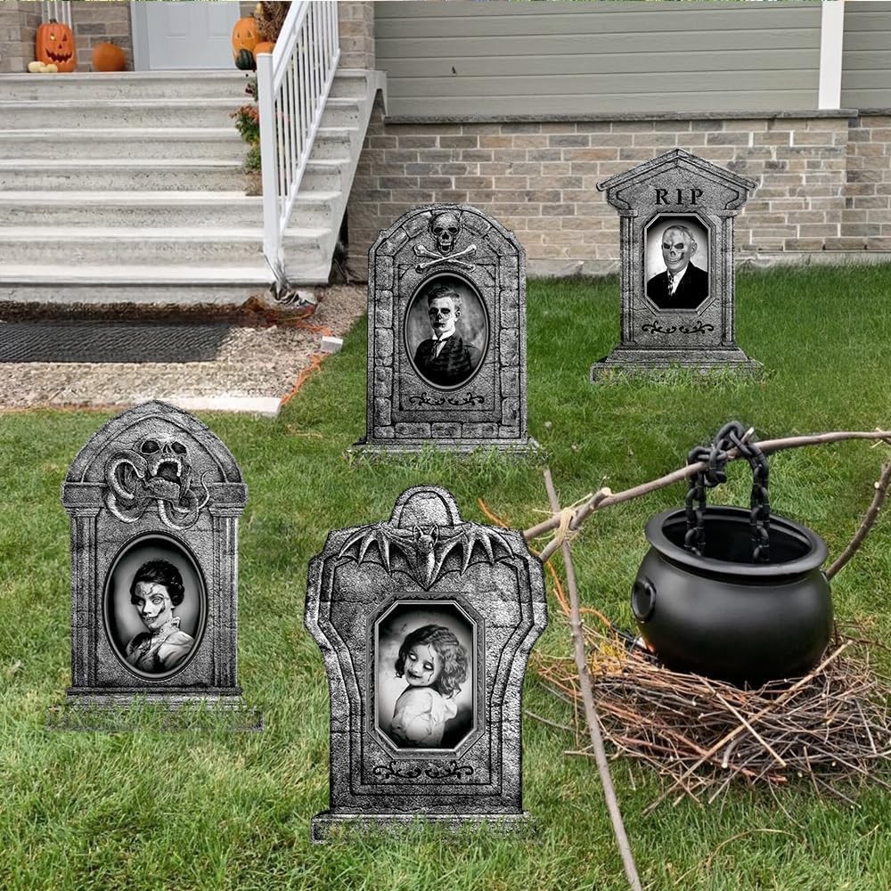 Graveyard Tombstones Halloween Decorations Outdoor: 4pcs Large Gravestones