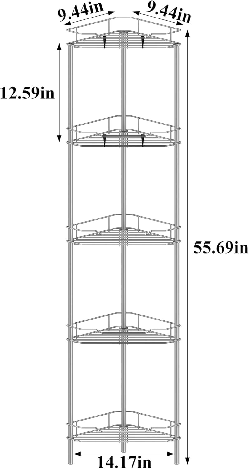 5 Tier Floor Standing Corner Shower Caddy Organizer Shelf with Hooks