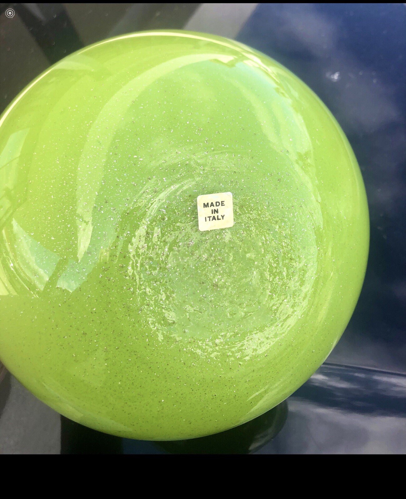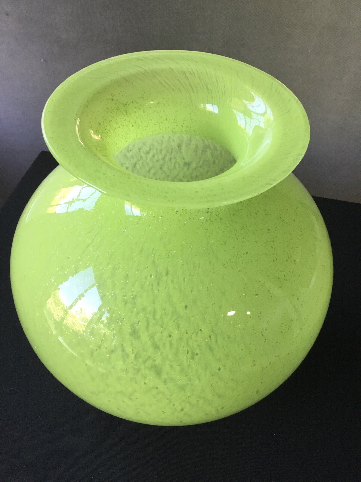 • Italian Hand Blown Art, Vase, Speckled Murano Style Lime Green, 9.5 x 9.5