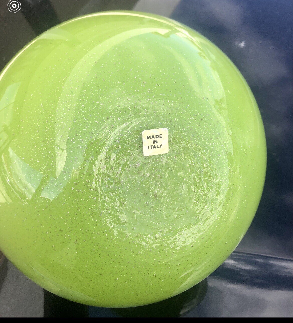 Italian Hand Blown Art, Vase, Speckled Murano Style Lime Green, 9.5 x 9.5