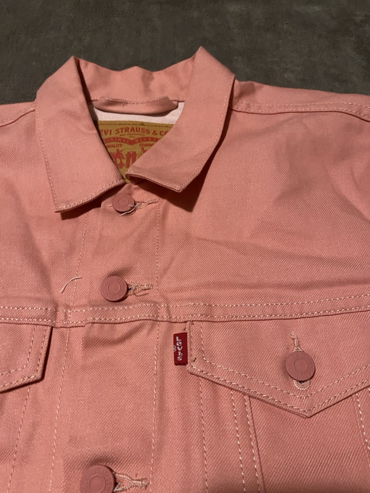 как выглядит Levis Trucker Jacket Mens Large Peach Pink Denim Jean Vintage Fit Cotton фото