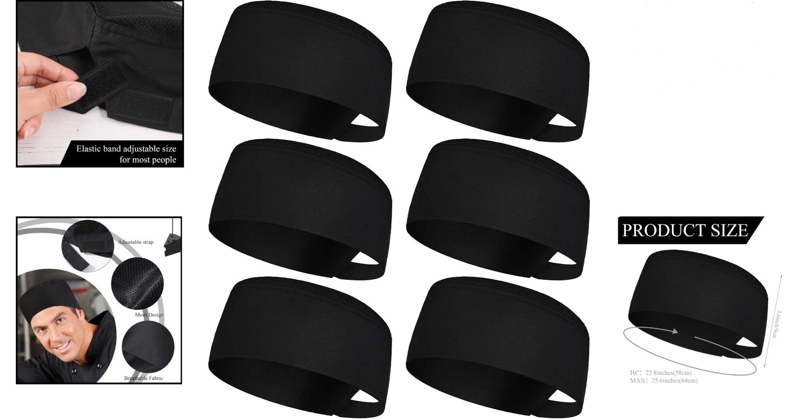 как выглядит Durable Black Chef Beanie Caps with Breathable Mesh Top  6 Pack for Home Work фото