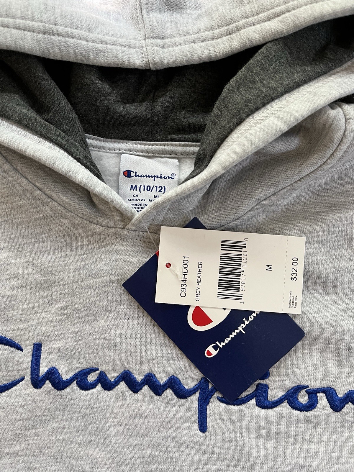 Champion Un sex Gray Hoodie Sweatshirt Fleece Inside M 10-12