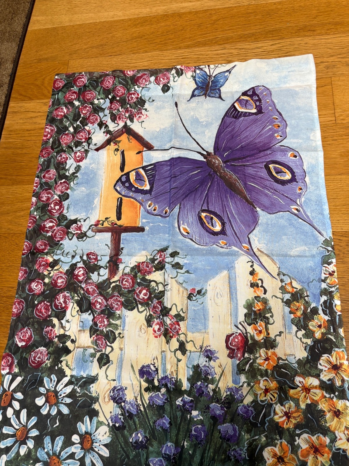 Welcome Garden Flag With Bird Feeder Large Butterfly Flowers Large 25 X 37