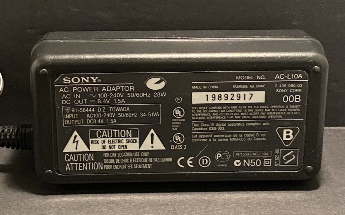 Genuine Sony OEM HandyCam AC-L10A Charger AC Adapter Power Supply Tested Working