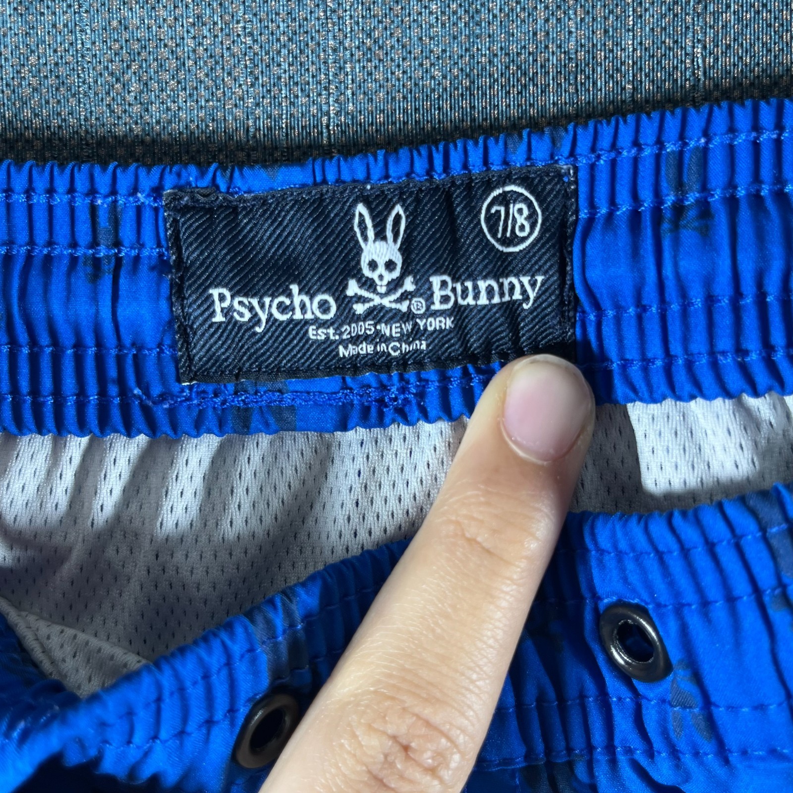 как выглядит Psycho Bunny Boys Shorts Size 7/8 Blue Ombre Bunny Logo Pattern Mesh Swim Trunks фото