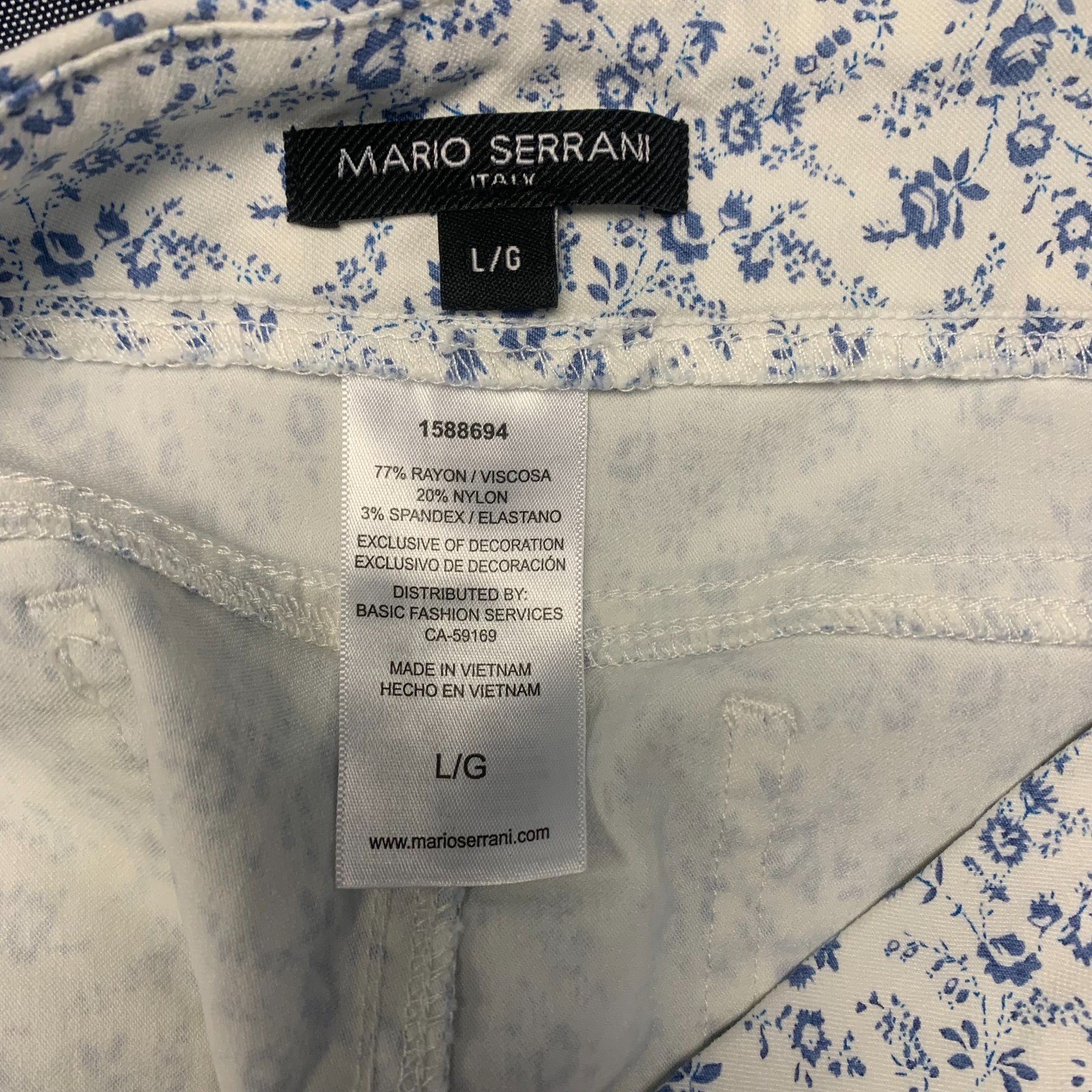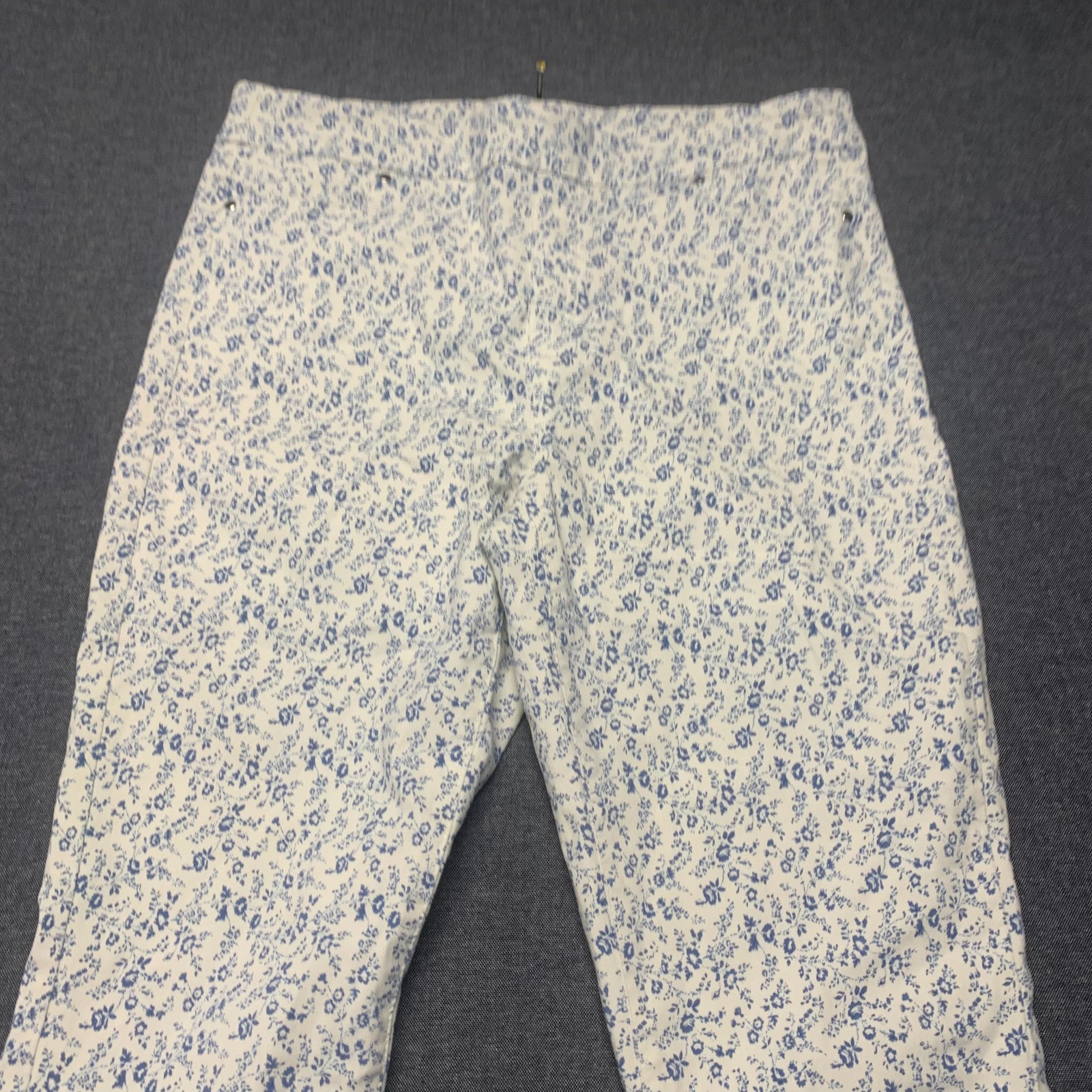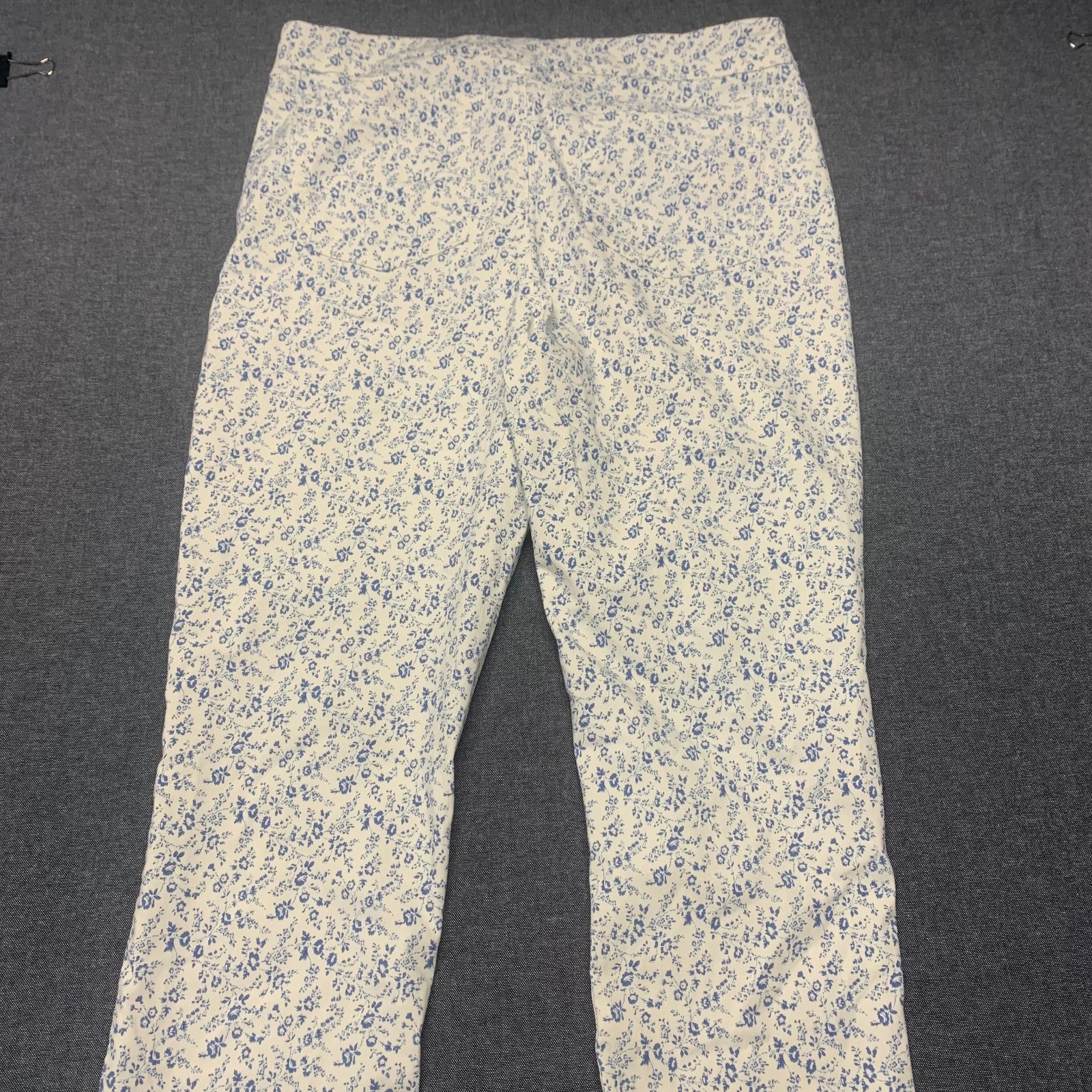 как выглядит Mario Serrani Womens Pants Size L White Blue Floral Stretch Pull-On Rayon Blend фото
