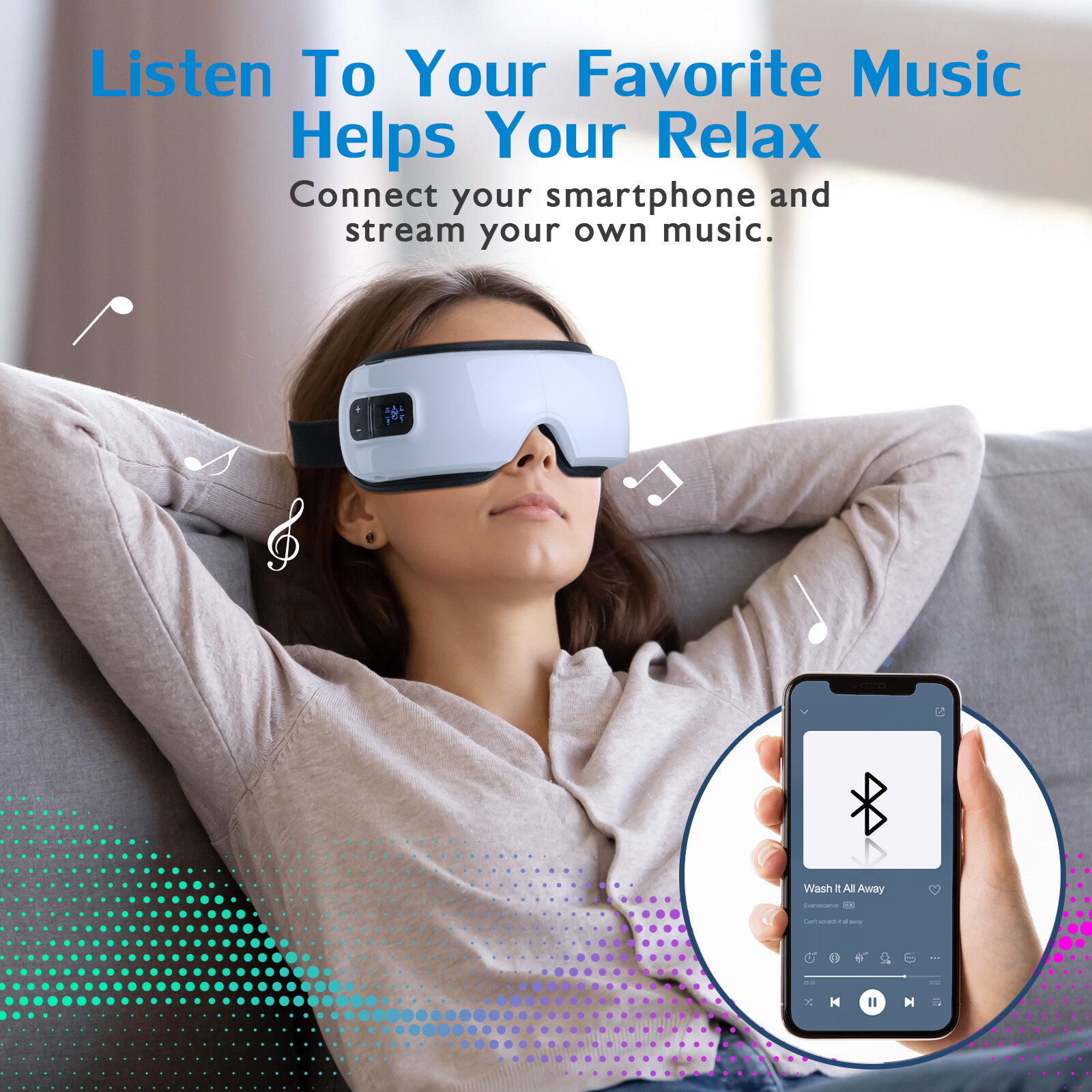 Electric Eye Massager Mask with Heat, Air Compression,Vibration, Bluetooth Music