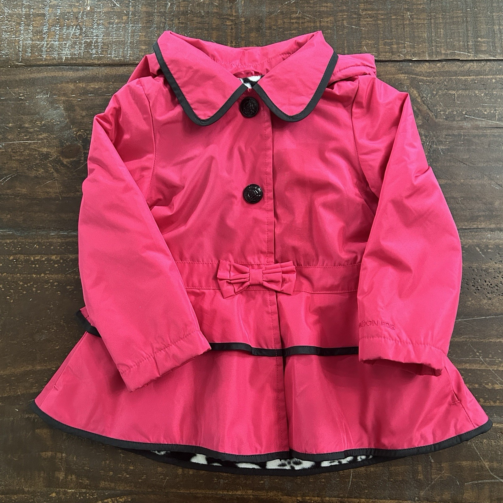 LONDON FOG SIZE 2T GIRLS JACKET COAT FLEECE LINED PINK HOODED PEPLUM SNAPS BOW
