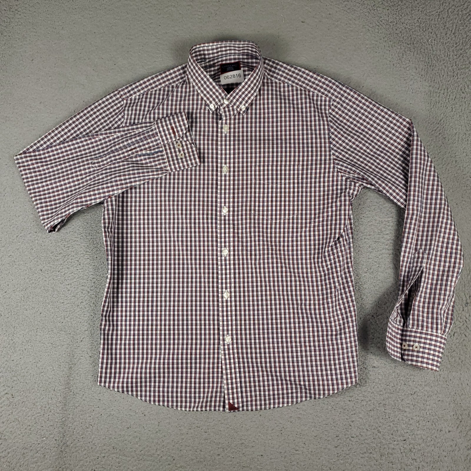 как выглядит UNTUCKit Shirt Mens Size Large Red Blue Plaid Casual Button Up Long Sleeve фото