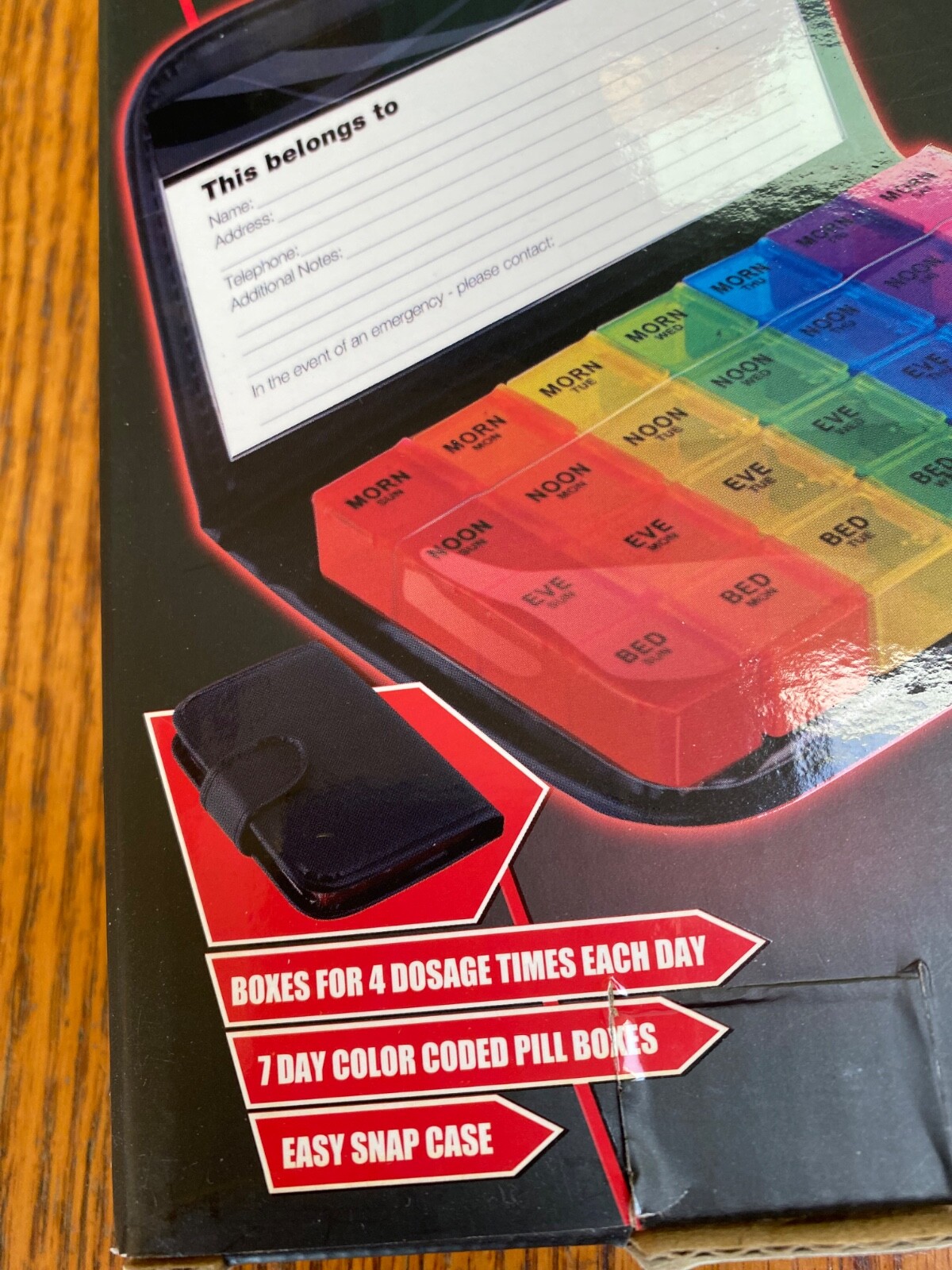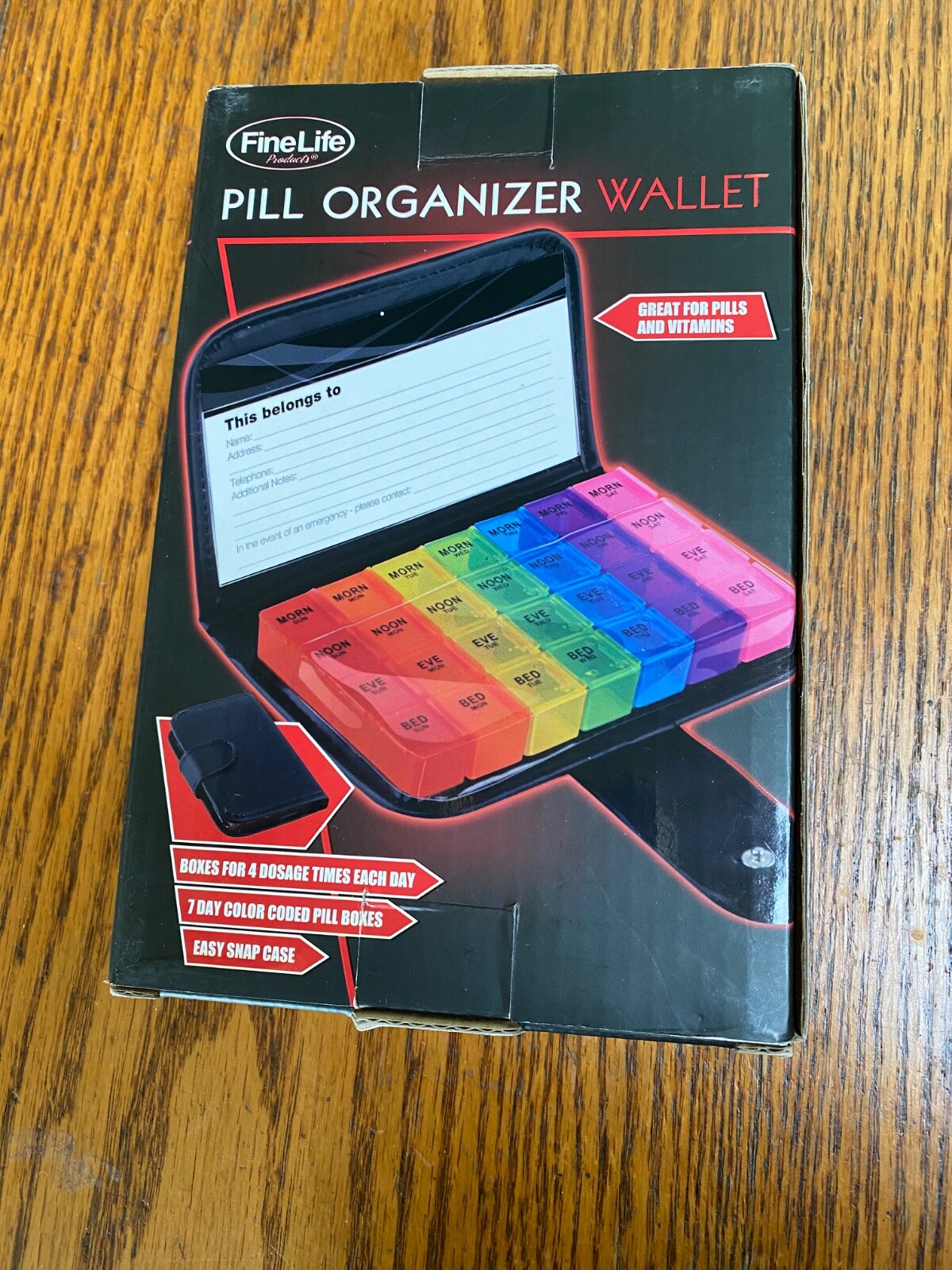 Fine Life Pill Organizer Wallet 7 Day Color Coded Pill Box Easy Snap Case New