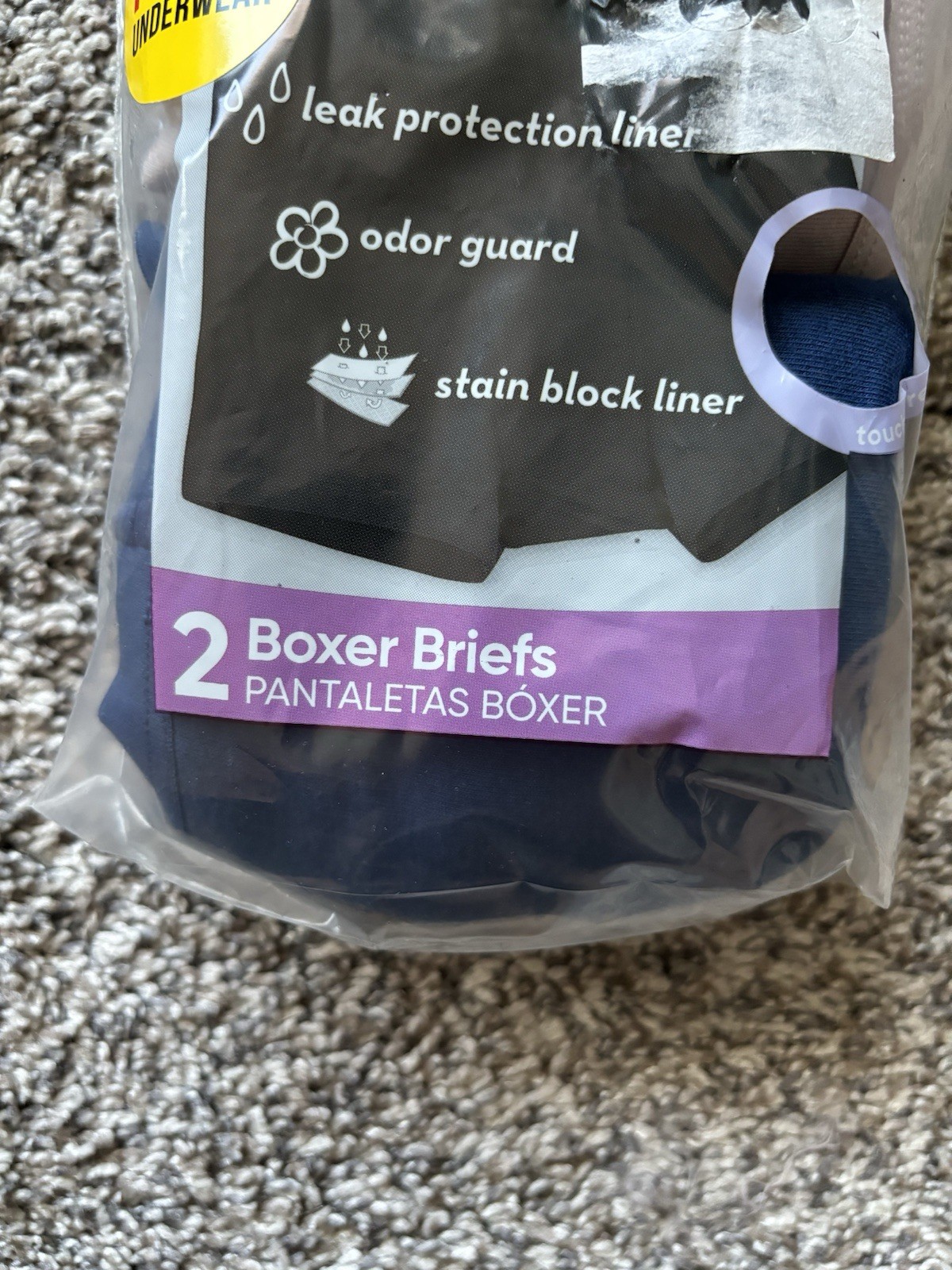 Hanes Comfort Womens Period Underwear Super Leaks Boxer Brief 2 Pack Sz 7/Large