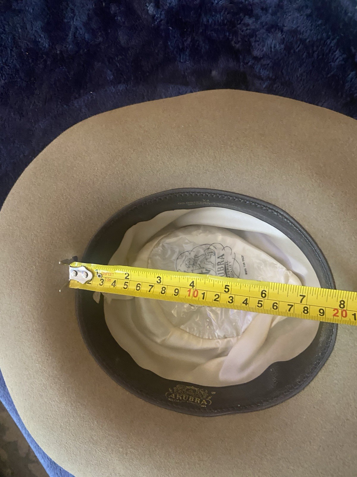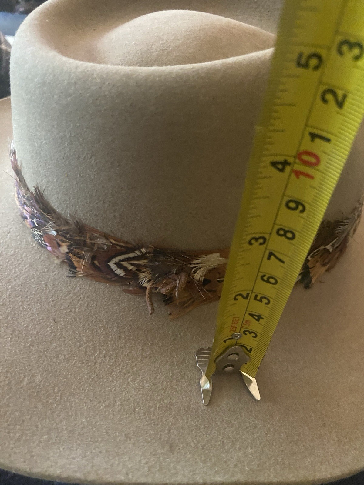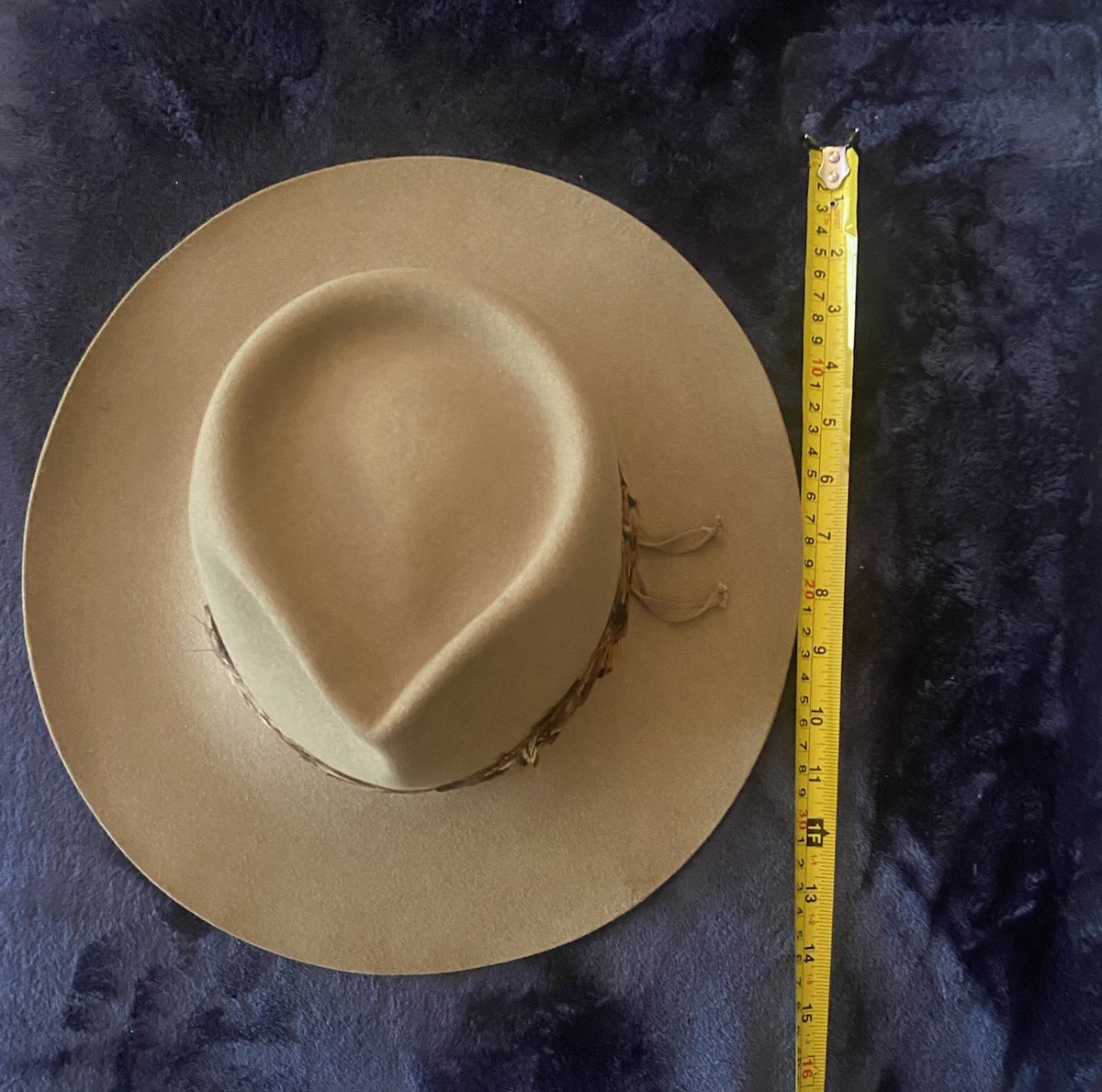 как выглядит Akubra Snowy River Pure Fur Felt Cowboy Hat Australia Made Size Unknown Feathers фото