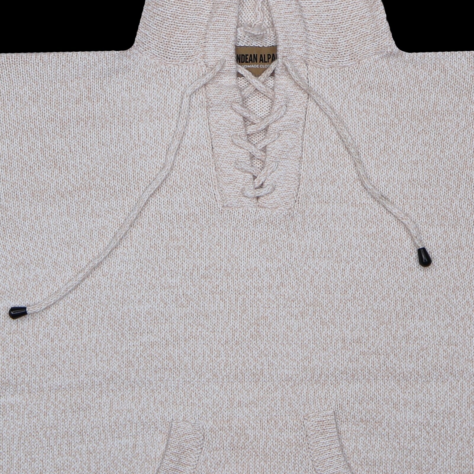 MEN HANDMADE ANDEAN ALPACA BEIGE PULLOVER HOODIE SZ M