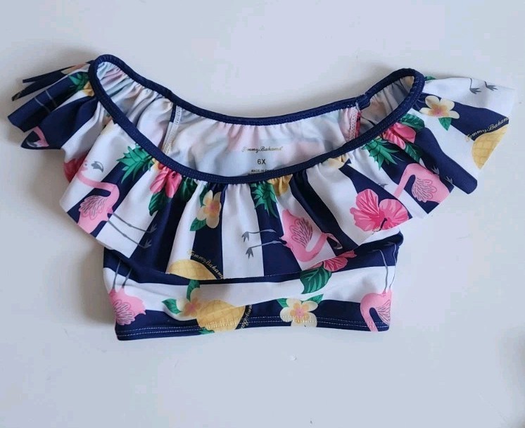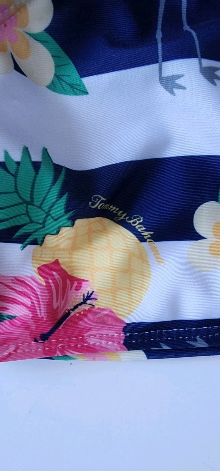 как выглядит TOMMY BAHAMA FLAMINGO NAVY WHITE STRIPE GIRLS TANKINI BIKINI SET 6X фото