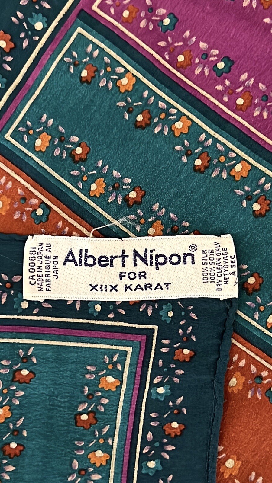 Vintage Silk Scarf By Albert Nipon for XllX Karat 50 Colorful Blocks Oblong