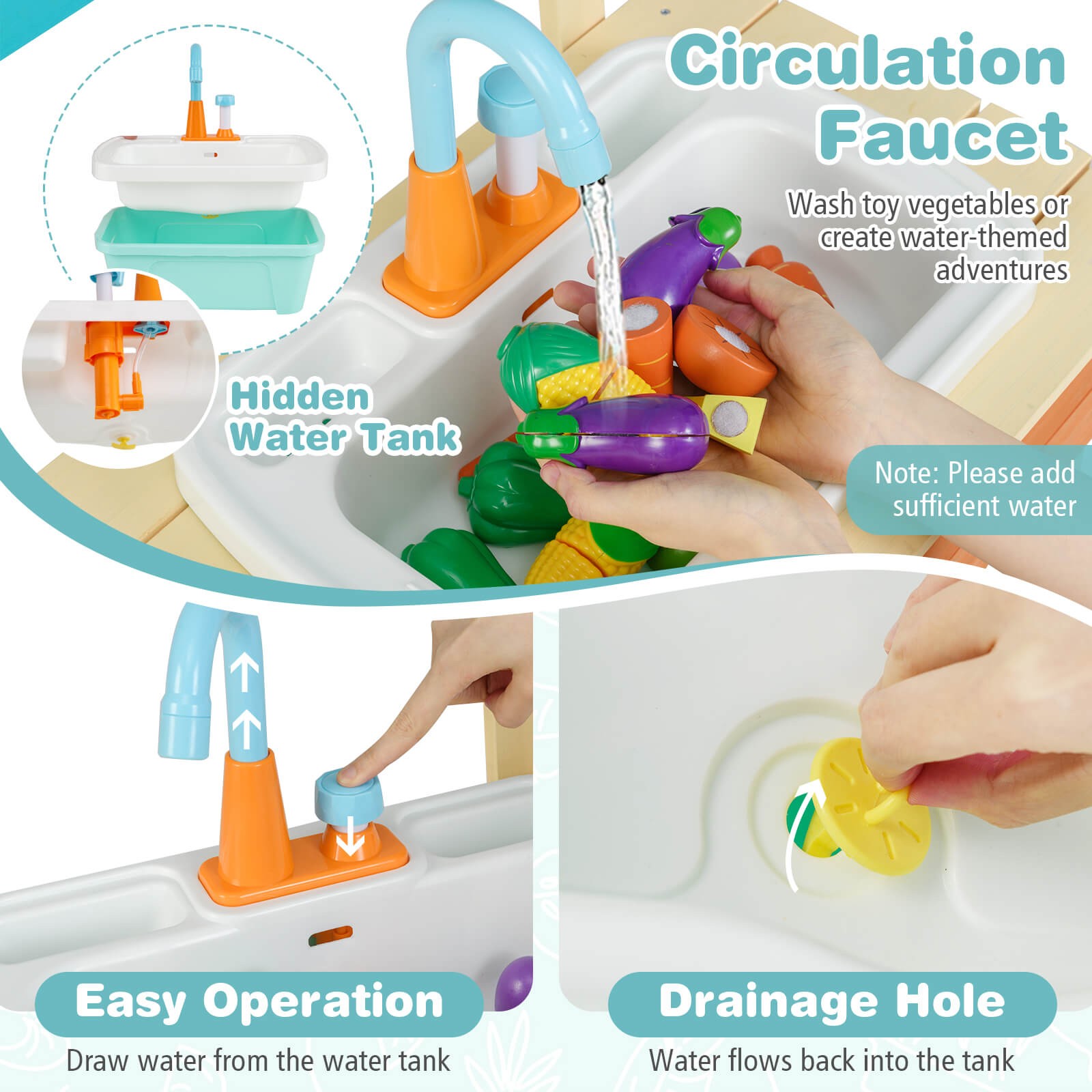 Play Kitchen for Kids Wooden Toy Kitchen Playset with Wood Skewers Grill Rack