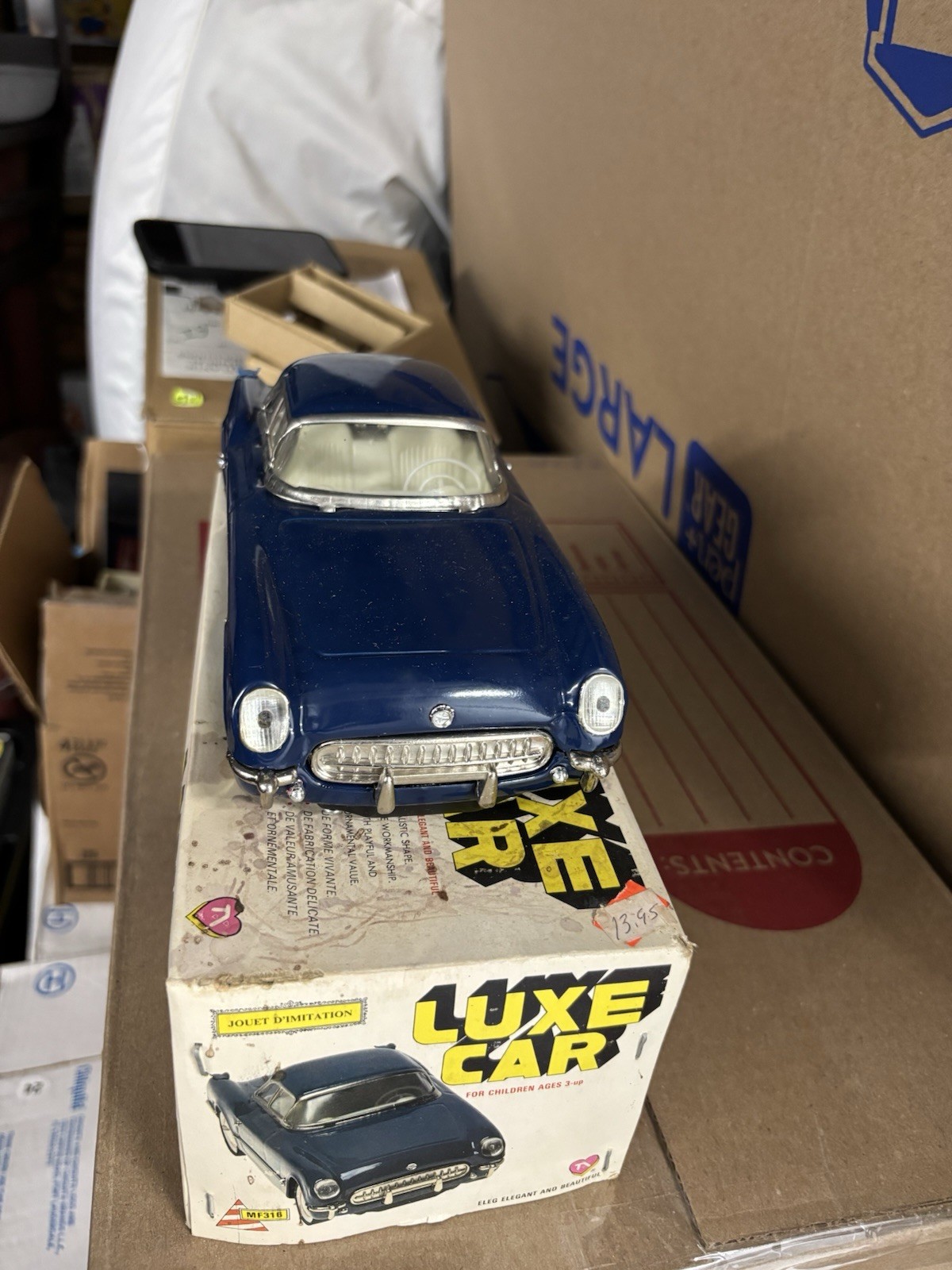 как выглядит Luxe Car 1:18 1950s Tin Friction Chevy Corvette MF 316 Blue фото