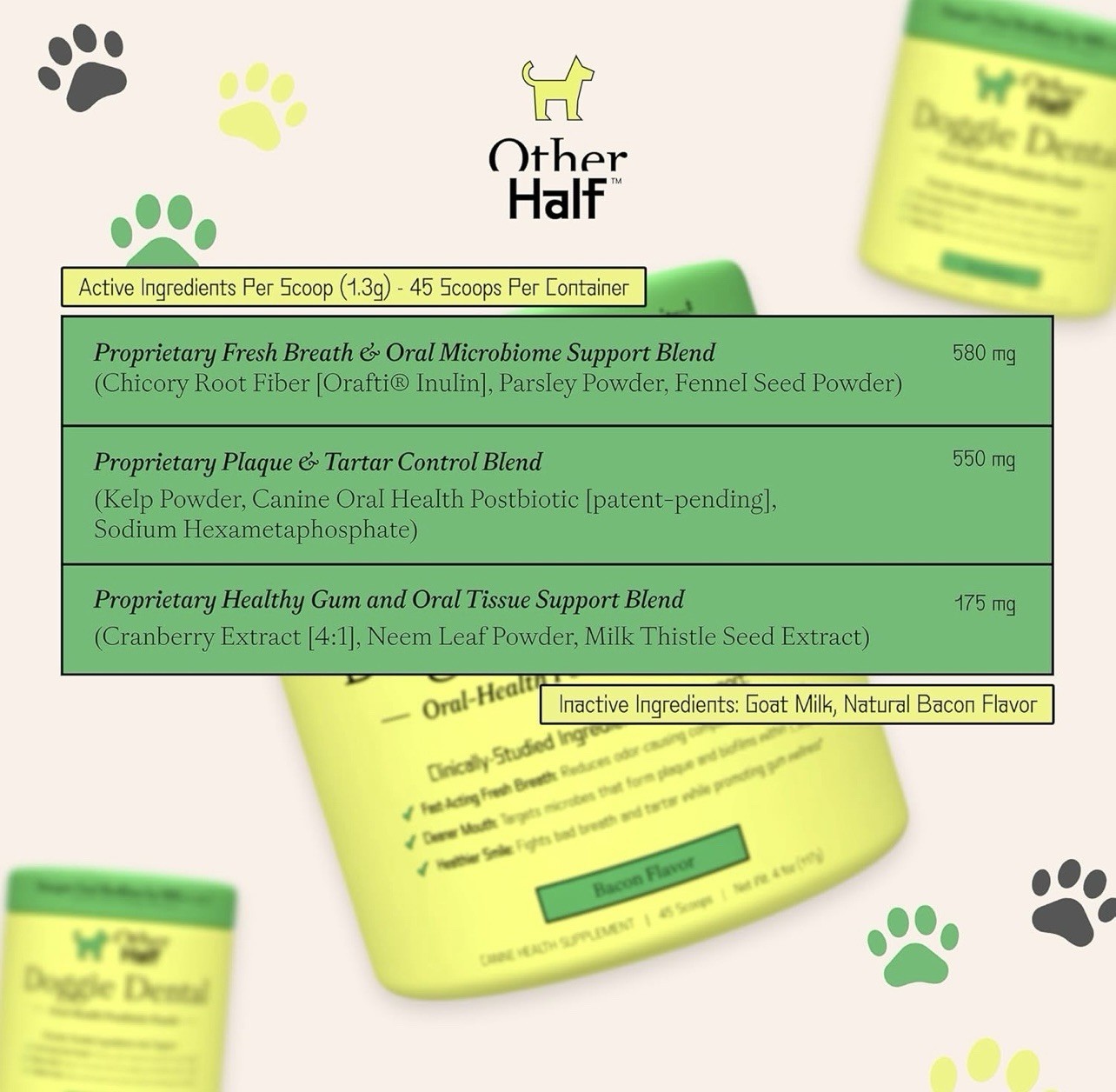 как выглядит Other Half Doggie Dental Oral-Health Postbiotic Powder 1.8 oz. Expires 06/2027 фото