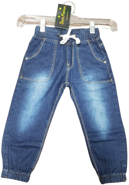 Skyhi Denim Jogger Pants with Adjustable Waist Distressed Style E Unisex