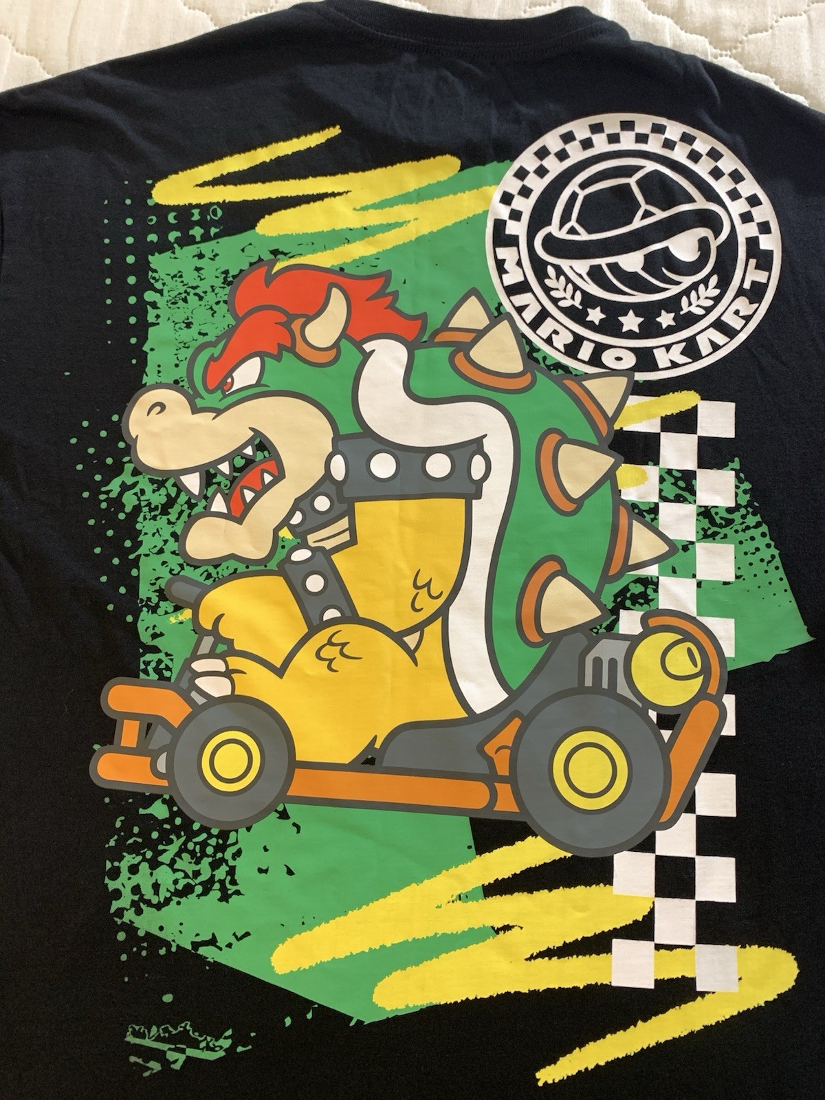 как выглядит Mario Kart BOWSER Video Game Checkered Pattern, Box Lunch OUT OF STOCK, Sz LARGE фото
