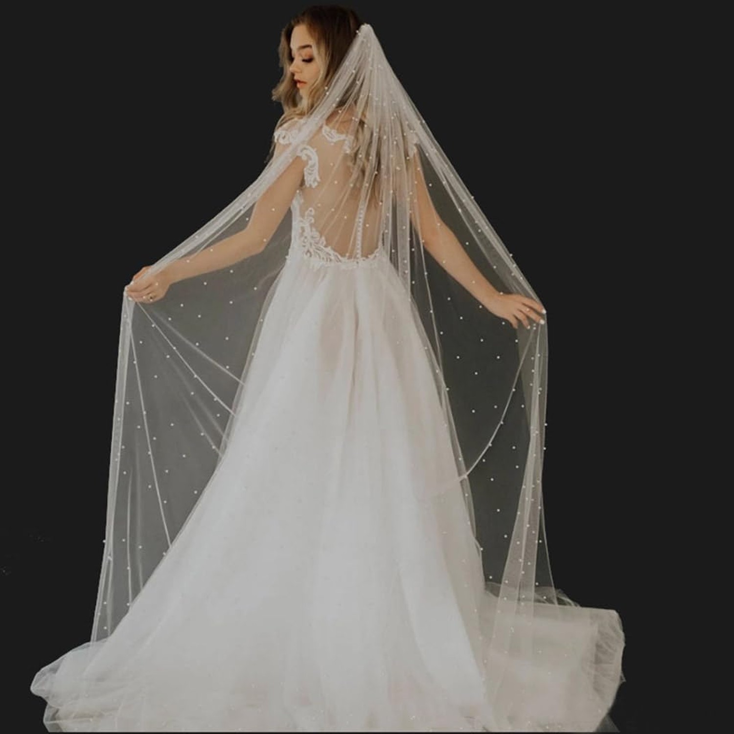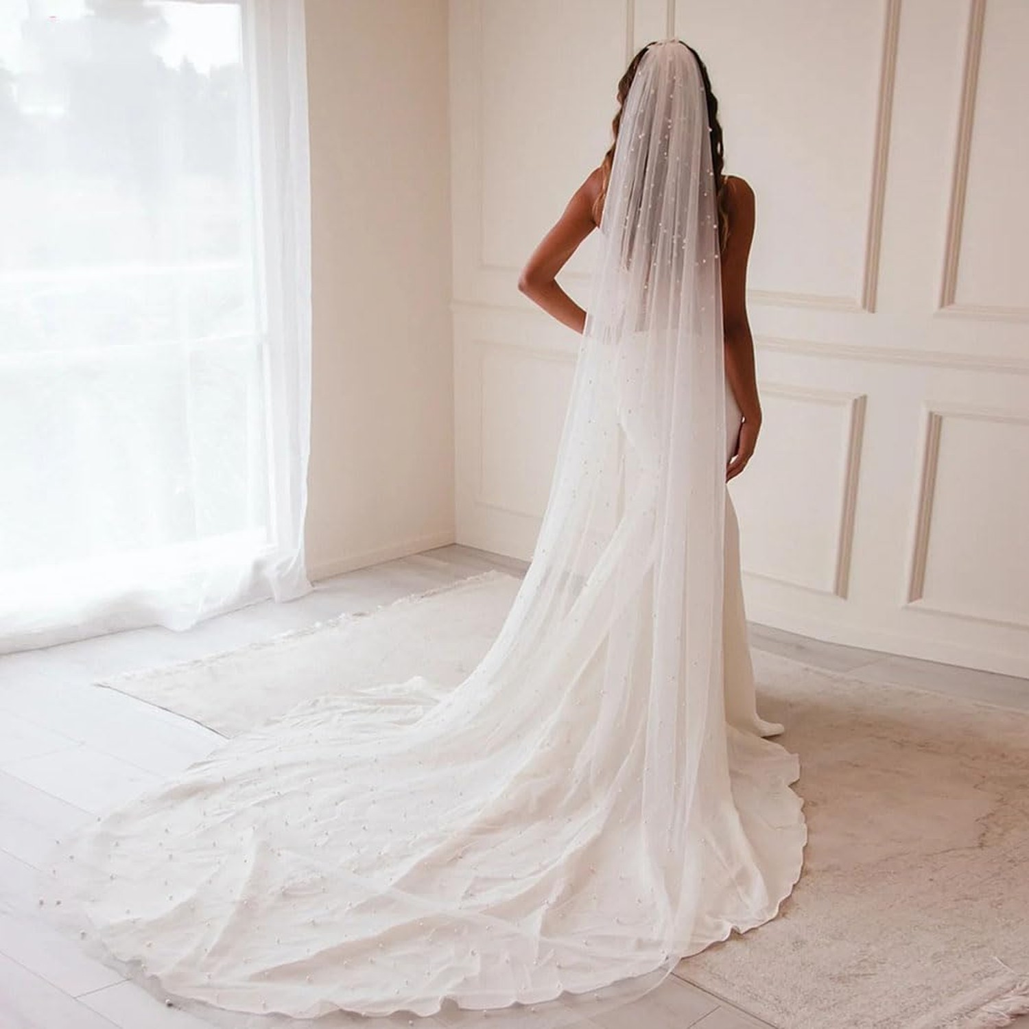 Yalice Pearl Cathedral Bridal Wedding Veil Long Veils for Brides 1 Tier Short...