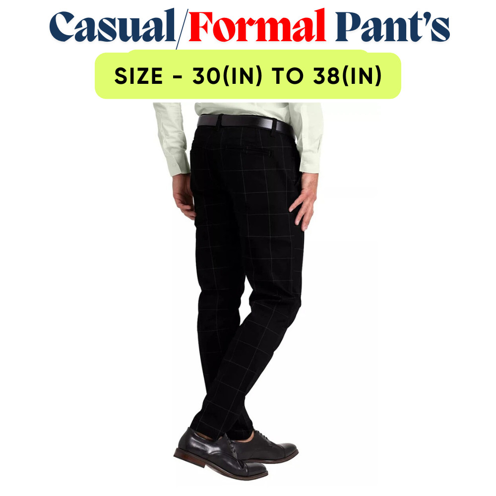 Men s Chino Pants Slim Fit Casual Cotton Check Formal Office Work Trousers 30-38
