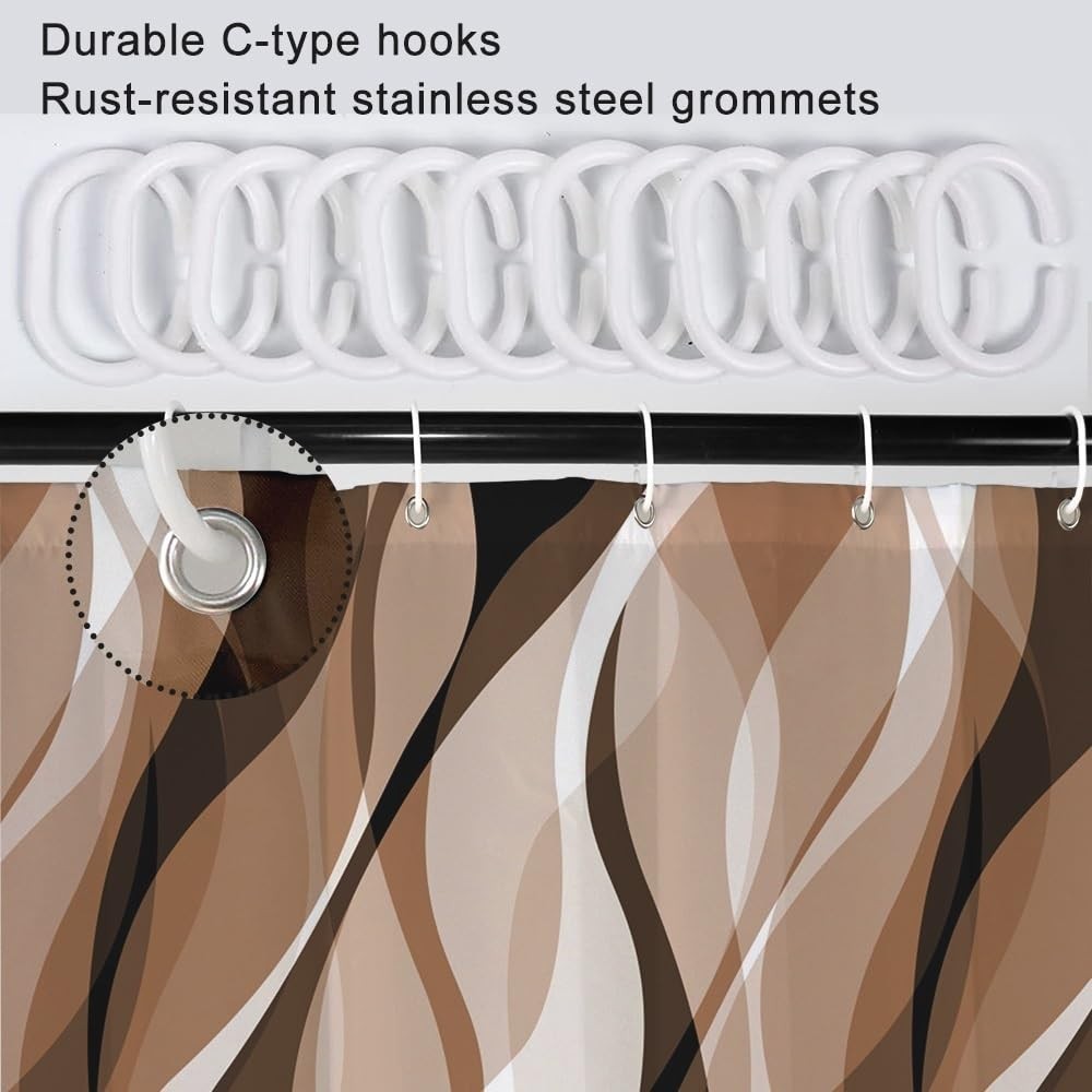 как выглядит Brown Shower Curtain Modern Abstract Grey and Brown Striped Shower Curtain Se... фото