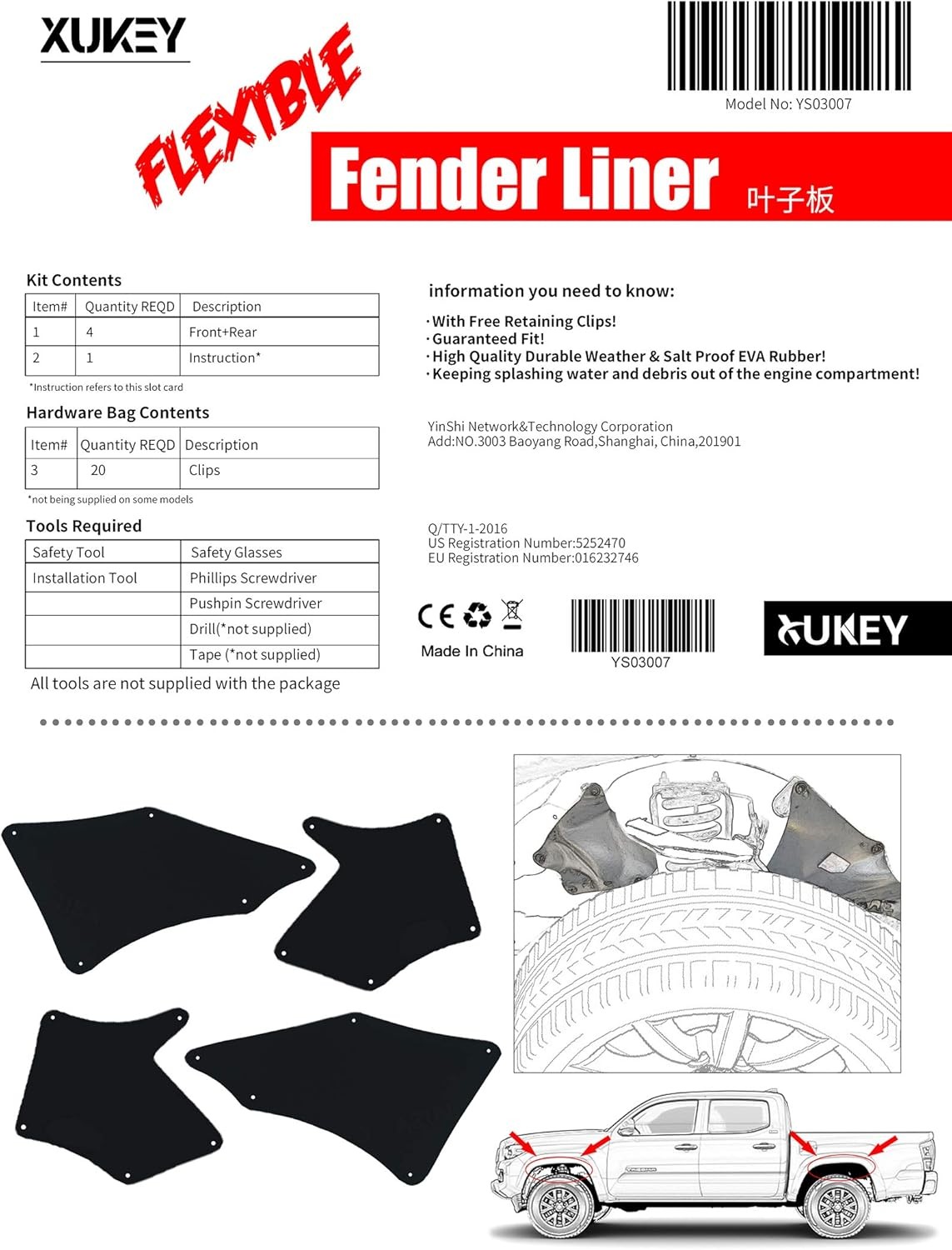• Guards for Tacoma N220/N240/N250/N260/N270/N300 2005-2023 Mud Flaps Guards