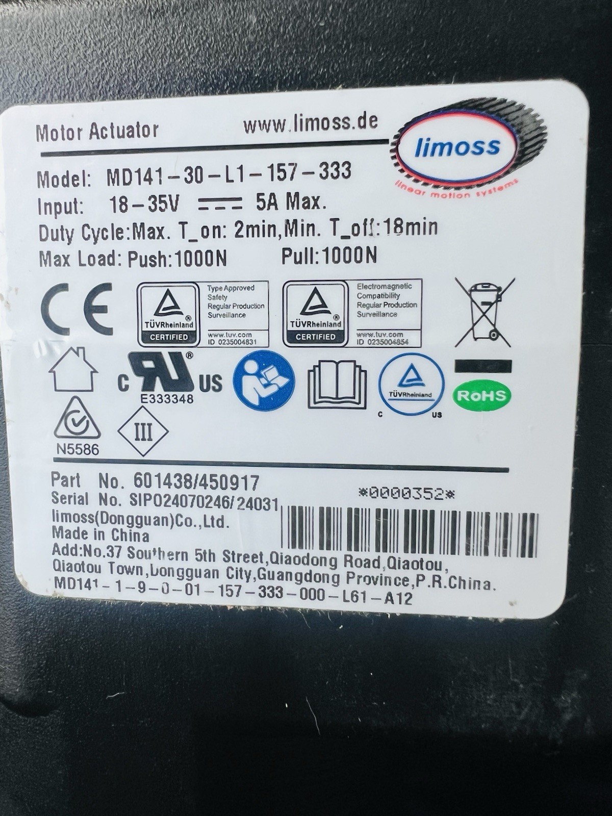 Limoss 450917 Motor MD141-30-L1-157-333 Recliner Lift Chair Actuator Replacement