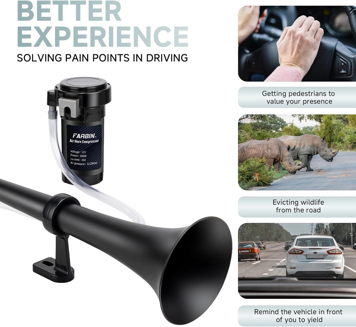 Train Horn for Truck 12V 150 db Air Horn for Car Super Loud 18 Single Black
