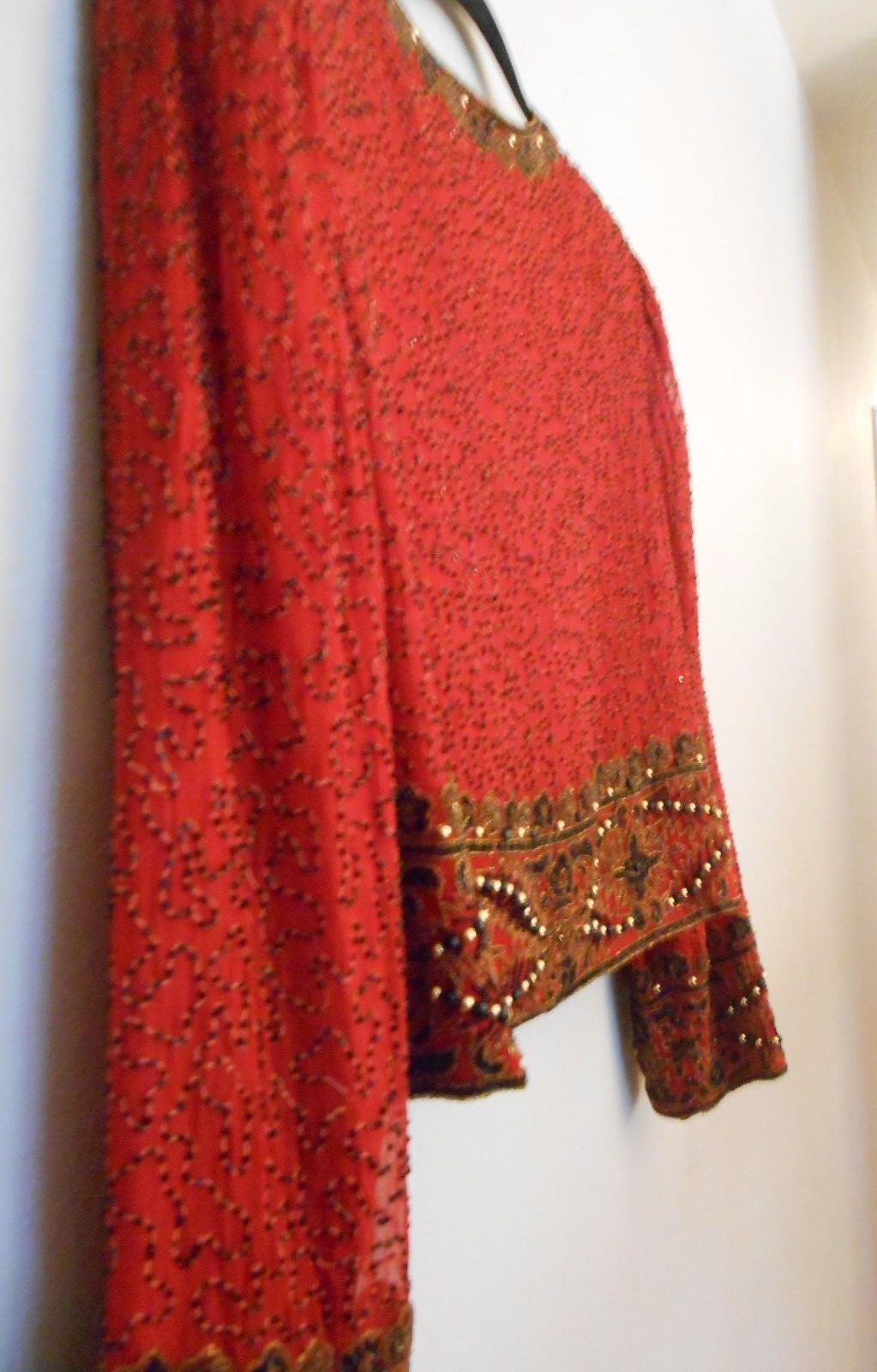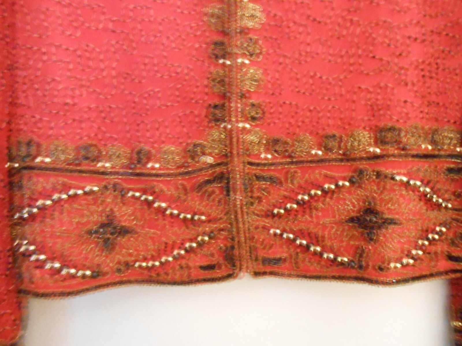 как выглядит LAWRENCE KAZAR NY VINTAGE CROPPEDSILK RED BEADED JACKET XL SHOULDER PADS фото
