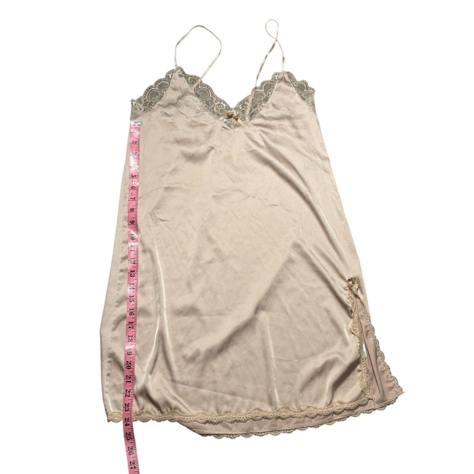 Dainty feminine romantic coquette lace slip dress w bow, slit adjustable strap