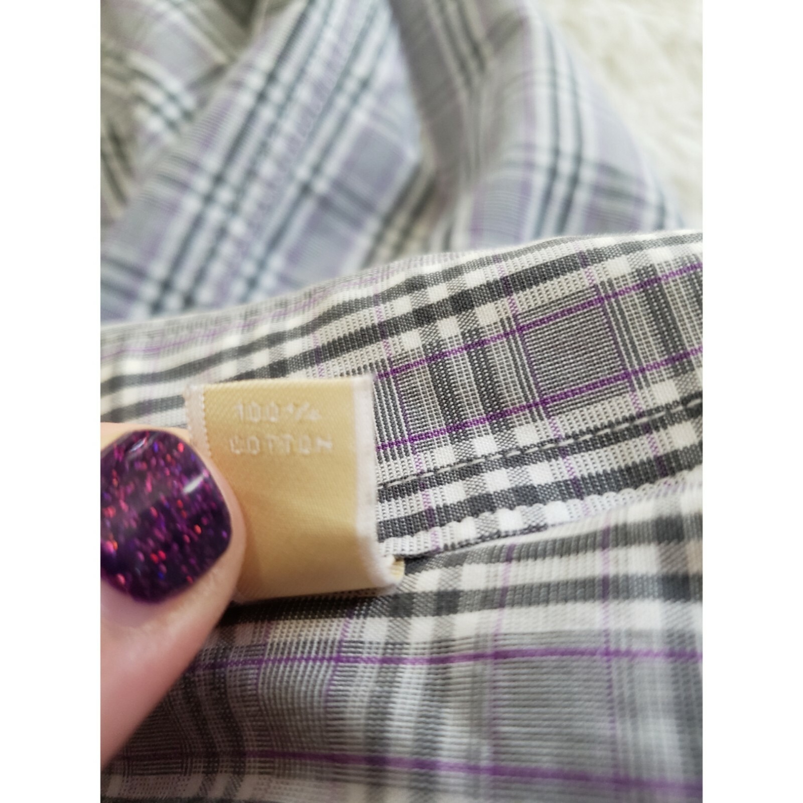 как выглядит Michael Michael Kors purple and gray plaid long sleeve button down dress shirt фото