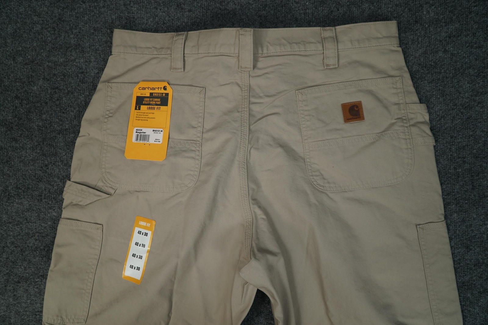 как выглядит Carhartt Pants Mens 40x30 Beige Loose Fit Canvas Utility Work Carpenter BN0151 фото