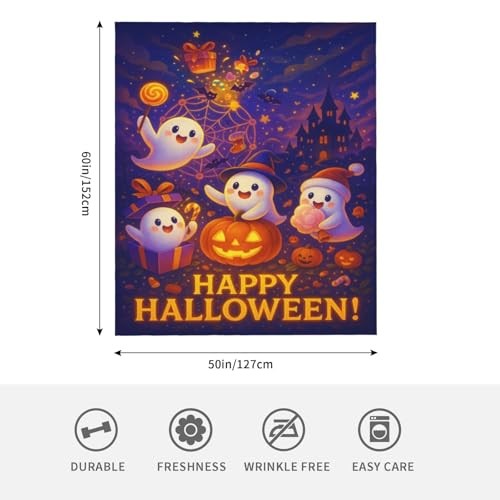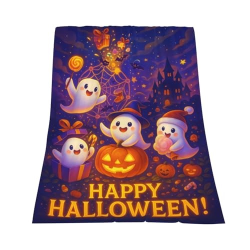 Blanket Soft Flannel Pumpkin Ghost Throw Blanket, Cute 60x50 Halloween