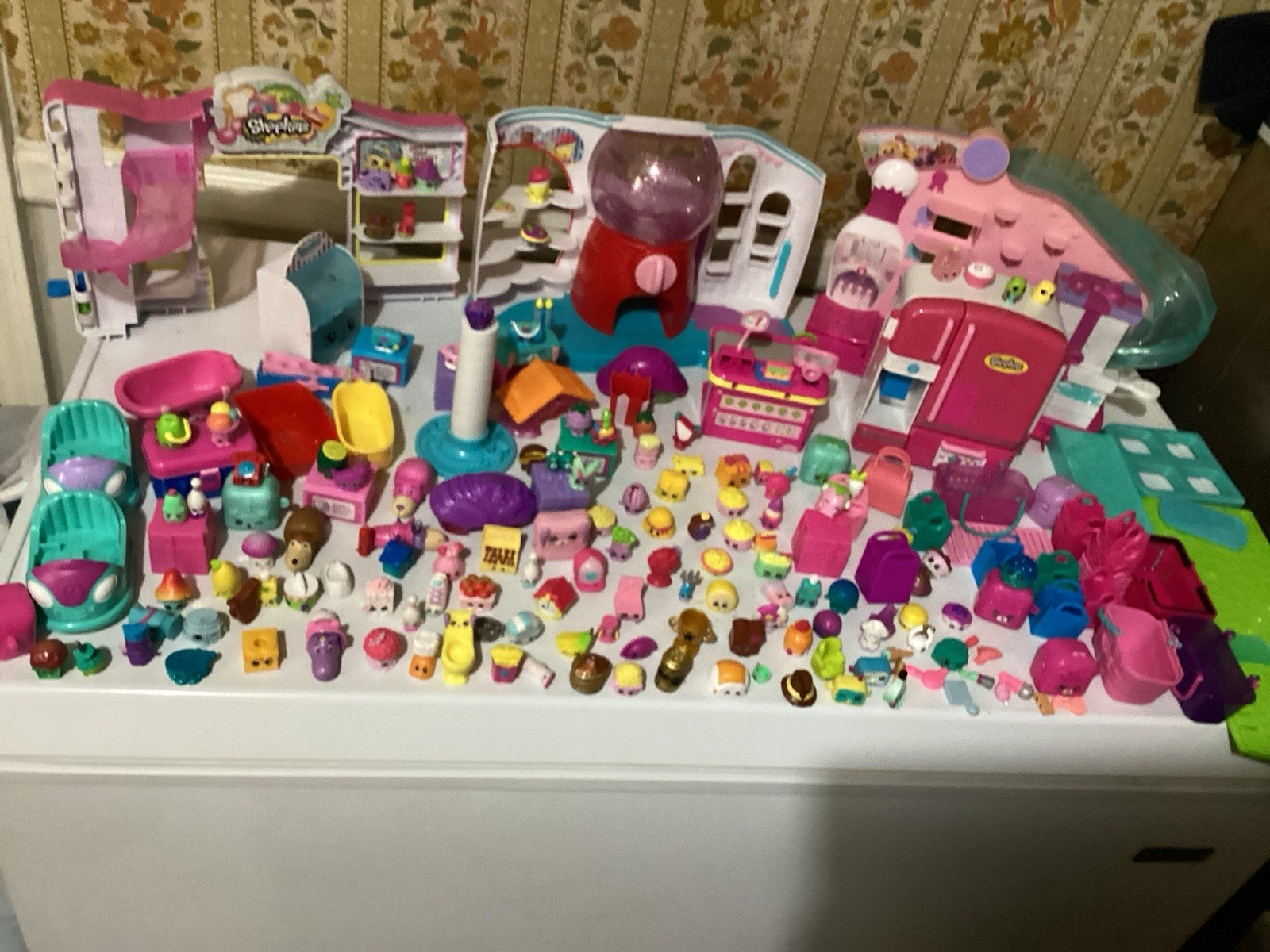Huge Shopkins Lot 100 Figures, Playsets, Small Mart Bonus Storage Bin