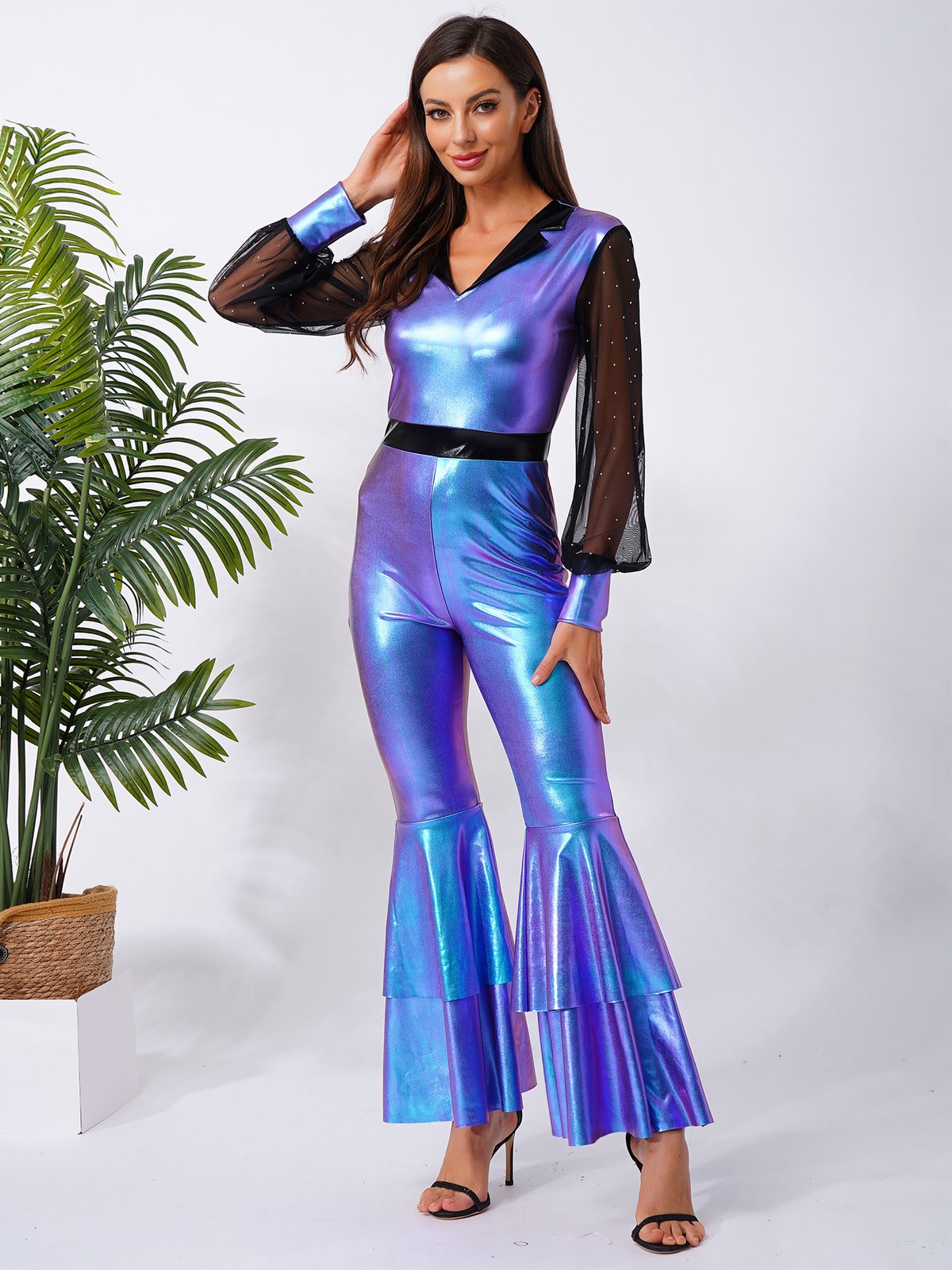 как выглядит Womens Full Bodysuit Carnival Ropmper Party Costume Festival Jumpsuit Night 80s фото