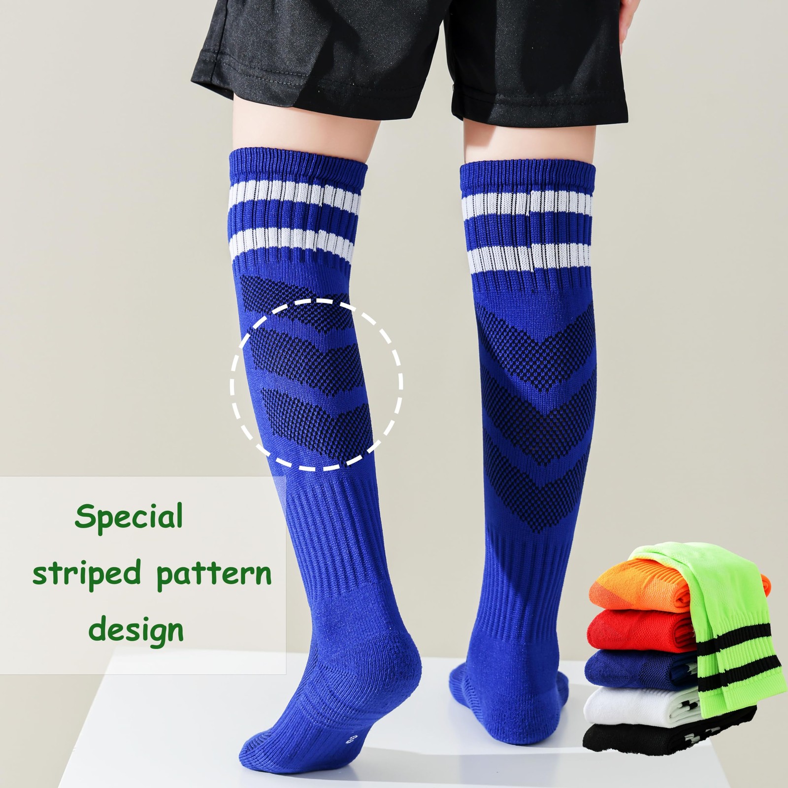 Boys Soccer Socks Toddler Athletic Socks 5-7 Years Knee High Striped Football...