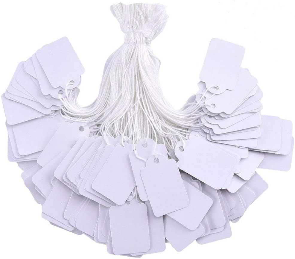 Brothersbox Price Tags with String Attached, 500Pcs White Smooth Surface Marking