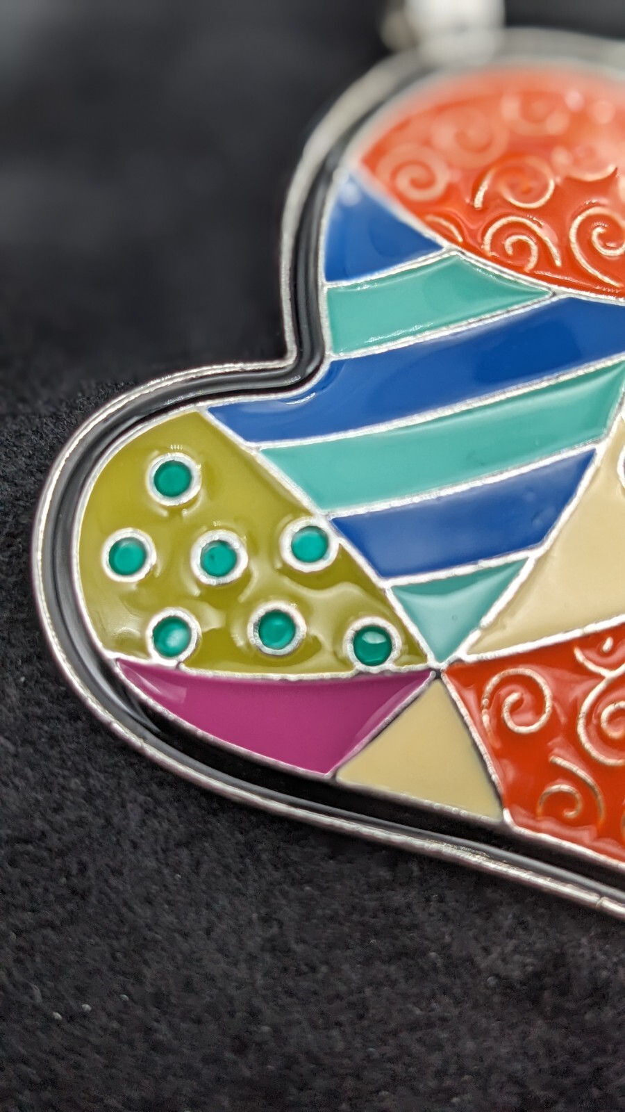 Roman Wearable Art Multi Color Enamel Pendant-Heart Silver Magnetic Closure