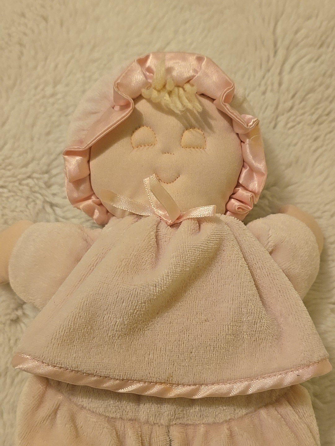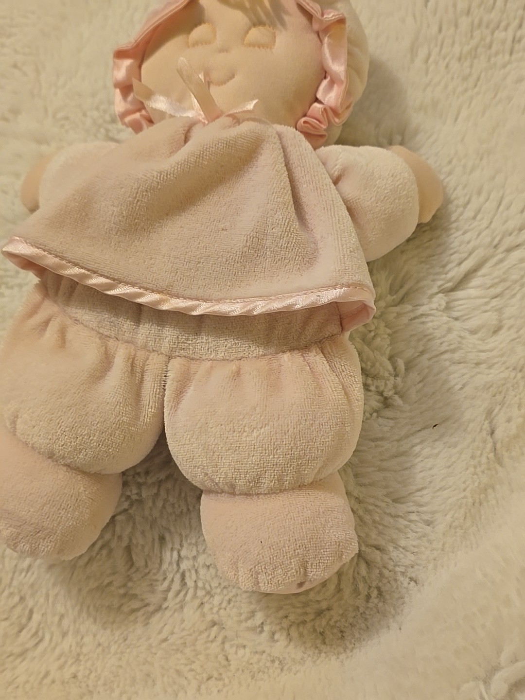 как выглядит VGN Eden Baby Doll Plush 11" Pastel Pink Satin Velour Toy Sleep Eyes Terrycloth фото