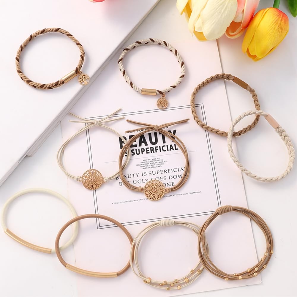 10PCS Hair Ties Bracelet for Women 5 Styles Soft Braided Boho Hair Bands Elas...