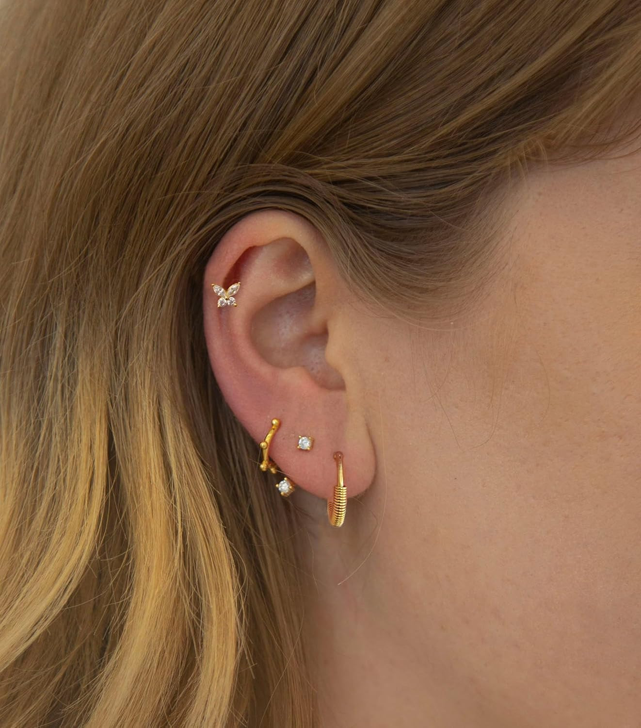 как выглядит 925 Sterling Silver Butterfly Gold Screw Back Stud Earrings for Women/Girls, Sma фото