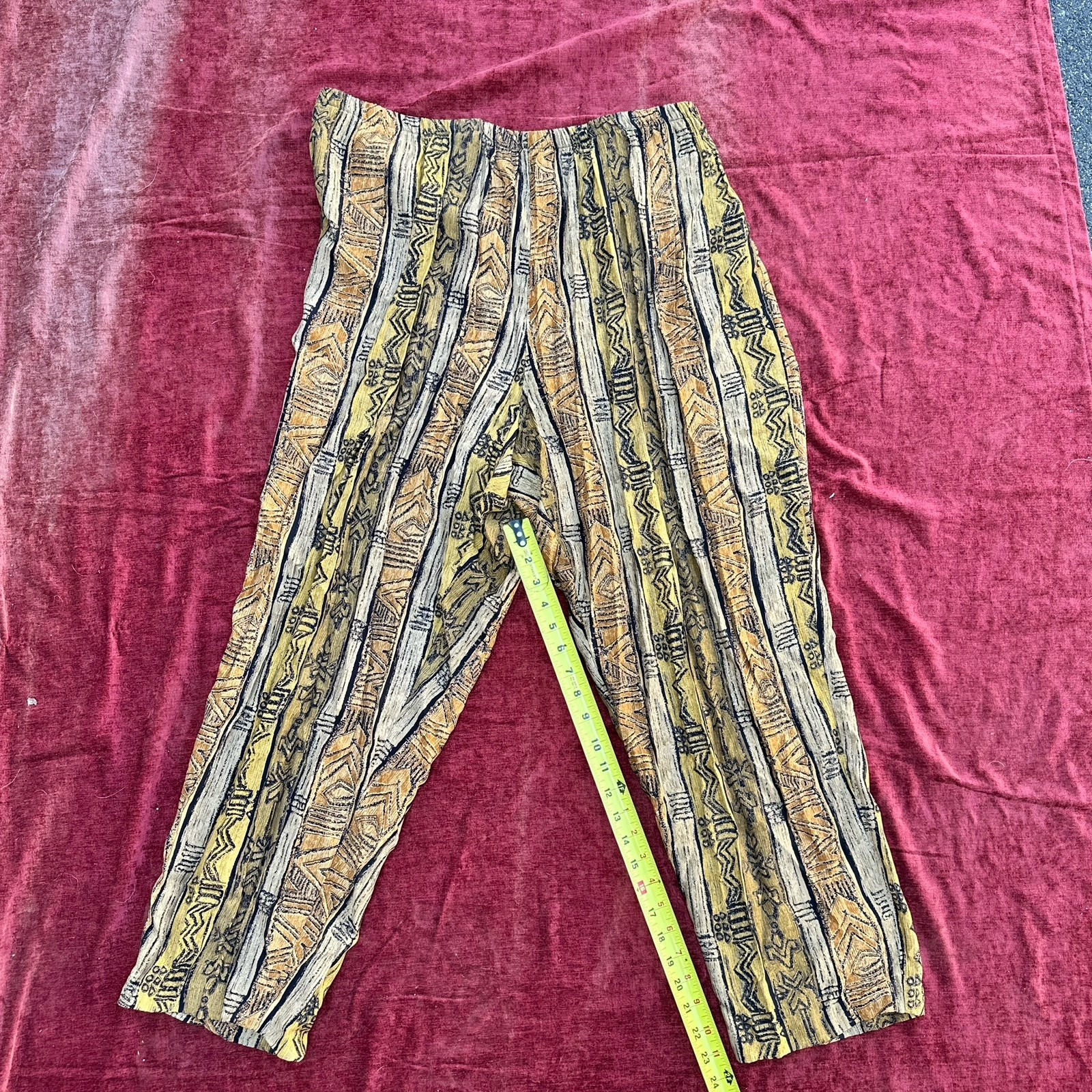 Vintage Boho Tribal Print Pants Elastic Waist Wide Leg Unisex