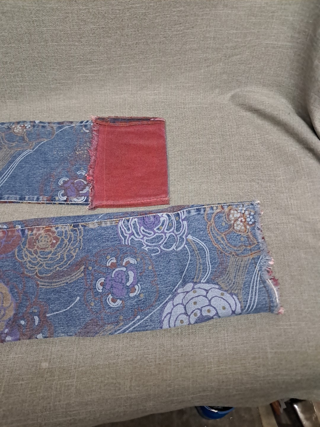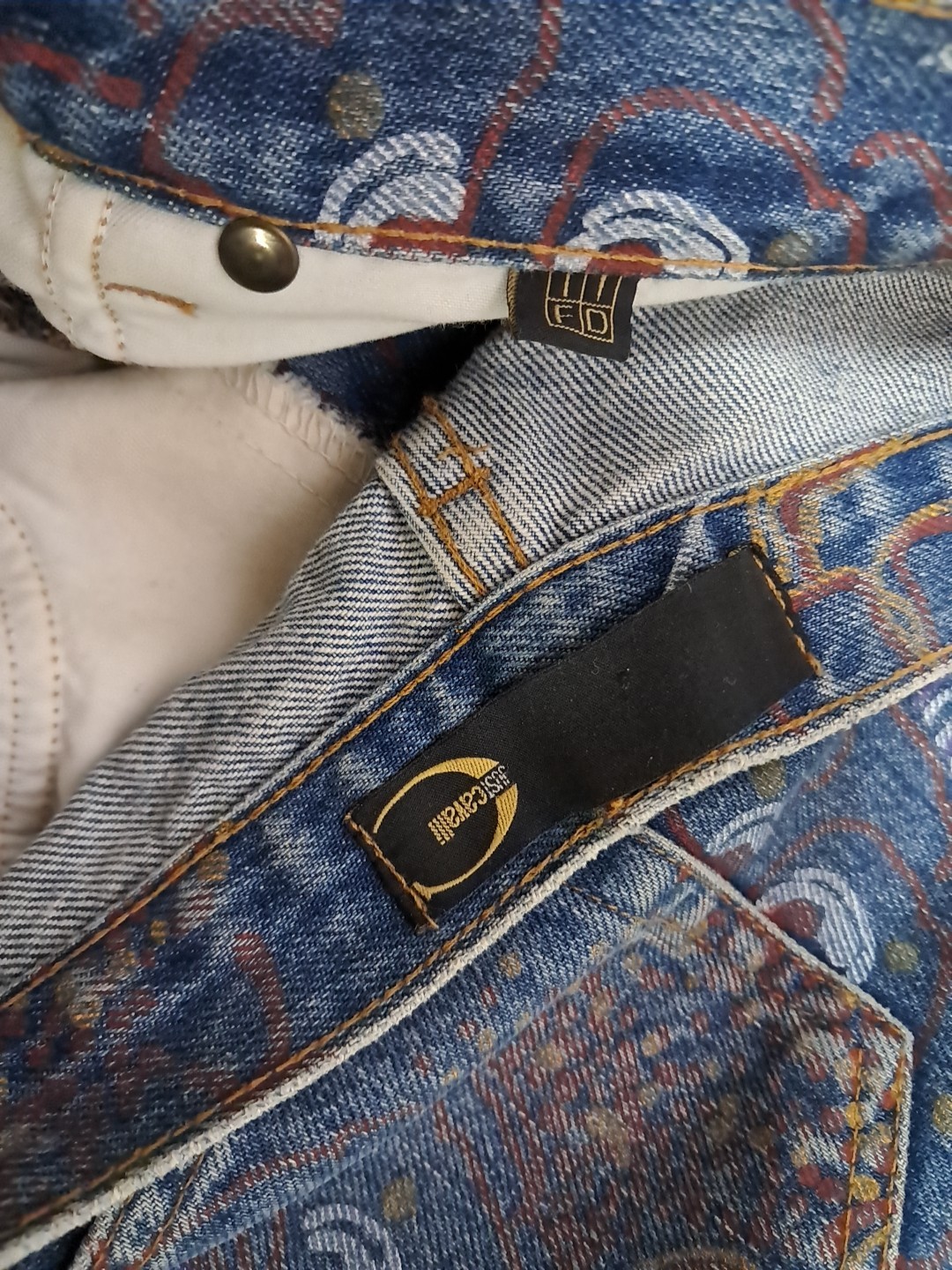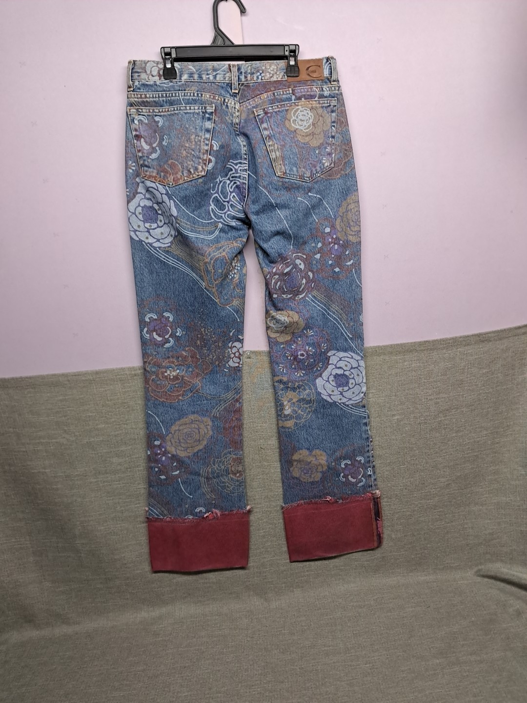 как выглядит Vintage Just Cavalli Floral Print Designer Red Folded Cuff Jeans Pants фото