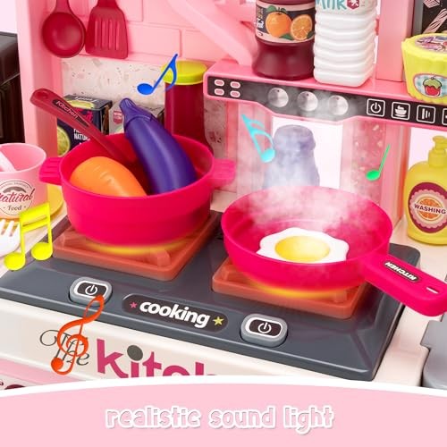 Kids Kitchen Playset-53pcs Cooking Stove,Paly Sink,Oven,Kitchen Toys with Pink