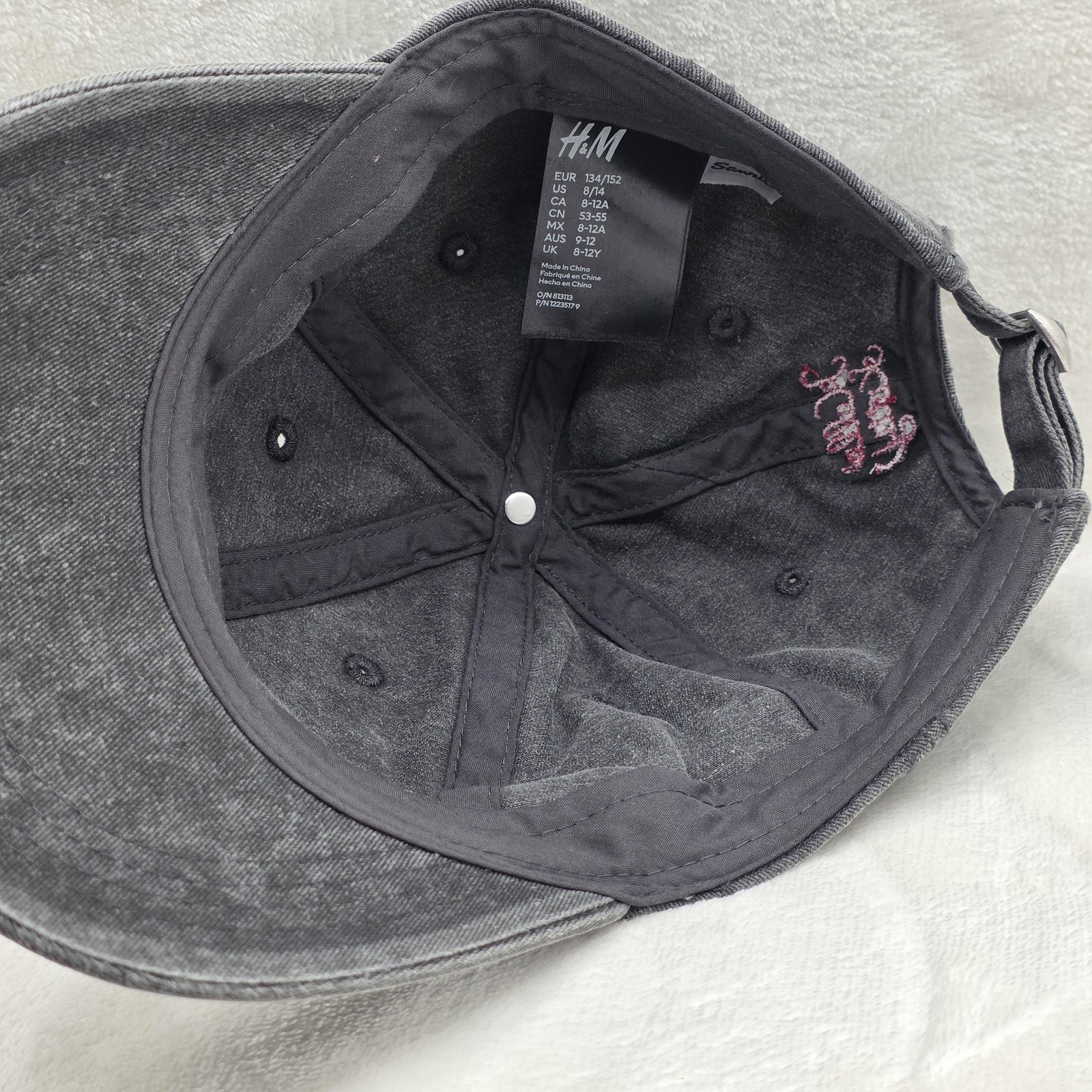 Hello Kitty Hat Cap Strap Back Youth 8-12A Gray Embroidered Sanrio H M Kids